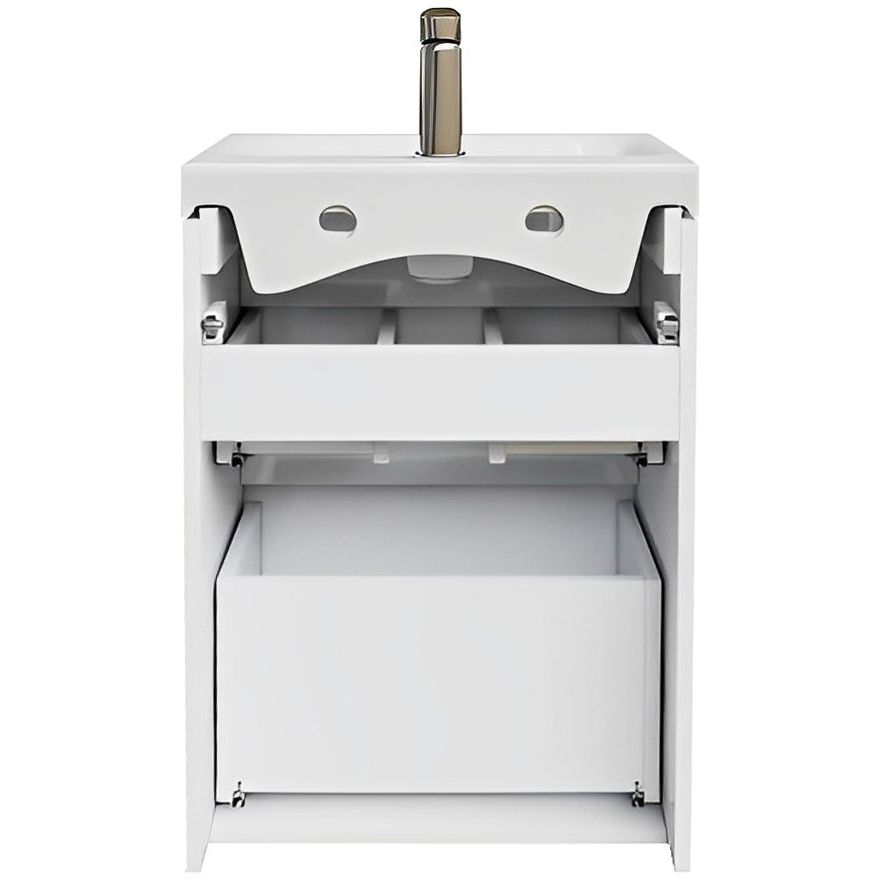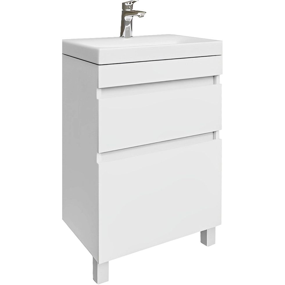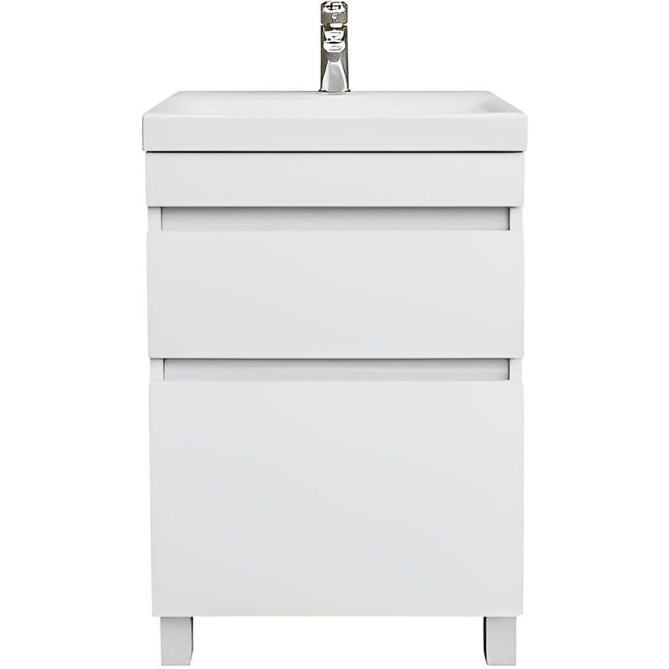 Тумба IDDIS Zodiac 50 напольная с ящиками имеет размеры 49,4x34,3x82,5 см, что делает её компактной и функциональной. Корпус и фасад выполнены из ДСП с эмалевым покрытием, придающим изделию визуальную привлекательность и устойчивость к влаге. Мебель комплектуется надежными опорными ножками и сифоном, а также оснащена доводчиком для плавного закрытия ящиков.