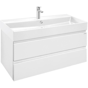 Тумба Jacob Delafon Madeleine EB1318-J5 изготовлена из влагостойкого МДФ, покрытого эмалью, что придает ей дополнительную стойкость к влажности и износу. Габариты комплекта составляют 99,8x46,2x45,2 см. Подвесная конструкция не только экономит место, но и облегчает уборку. Раковина Jacob Delafon Vivienne выполнена из прочного фарфора, подходит для сифона диаметром 3.2 см и оснащена встроенным сливом-переливом, а также одним отверстием для смесителя. Обратите внимание, что донный клапан нужно приобретать отдельно.