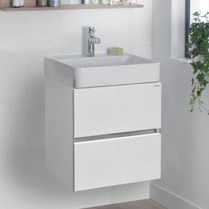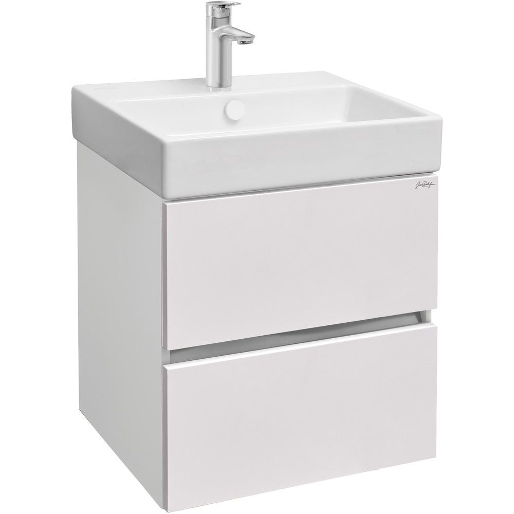 В комплекте с тумбой для ванной комнаты Jacob Delafon Tolbiac идет мебельная раковина, изготовленная из прочного и надежного фаянса с размерами 50x40 см. Тумба имеет габариты 48,6x39x52 см и оснащена механизмом доводчика, обеспечивающим плавное закрывание ящиков. Корпус и фасад тумбы выполнены из МДФ с эмалевым покрытием, что гарантирует устойчивость к влажности и долговечность. Раковина оснащена встроенным слив-переливом и имеет один готовое отверстие под смеситель. Для сифона диаметром 3.2 см необходимо приобрести донный клапан отдельно. Мебель имеет французскую гарантию: 5 лет на тумбу и 25 лет на раковину.