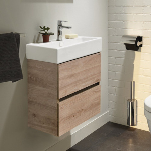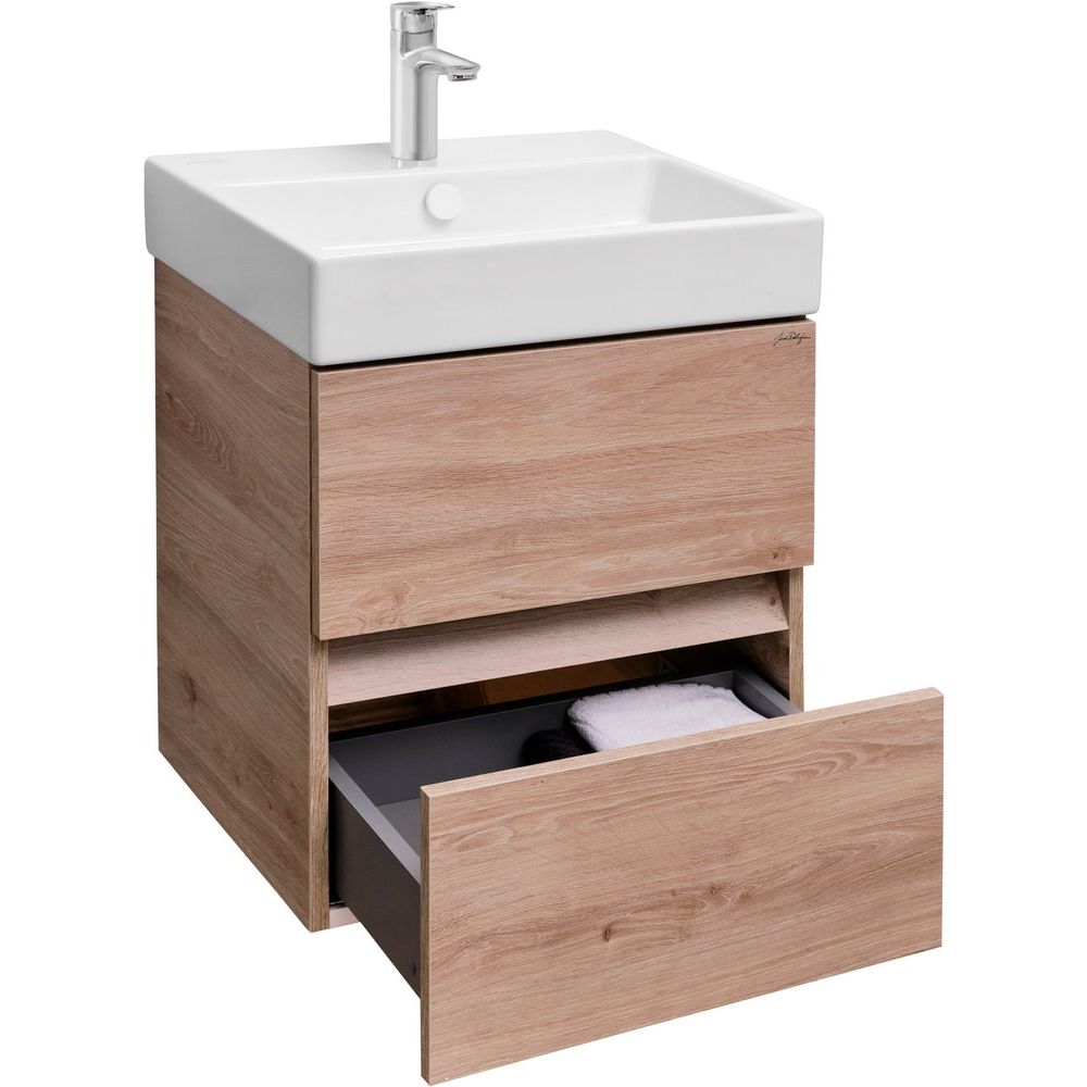 Тумба с раковиной Jacob Delafon Tolbiac 50 дуб давос – это гармоничное сочетание элегантного дизайна и практичности, созданное для современных ванных комнат. Эта подвесная модель не только украсит ваше пространство, но и предложит удачные решения для хранения. Удобный механизм доводчика обеспечивает плавное закрывание, предотвращая изнашивание. Белая раковина из фаянса придаёт свежесть и легкость всей конструкции.