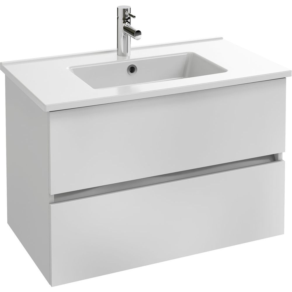 Тумба Jacob Delafon Tolbiac изготовлена из МДФ с высококачественным эмалевым покрытием, что гарантирует долговечность и сопротивляемость влажности. Ее габариты составляют 78,5x45,6x52 см, позволяя разместить даже в небольшой ванной комнате. В комплект входит мебельная раковина из фарфора Jacob Delafon Ola, шириной 81 см и глубиной 46,5 см, с одним отверстием под смеситель. Слив-перелив входит в комплект, что обеспечивает комфортное использование без лишних хлопот. Не забудьте докупить донный клапан и учтите, что раковина поддерживает диаметр сифона в 3.2 см. Обе части комплекта имеют французскую гарантию: 5 лет на тумбу и внушительные 25 лет на раковину.