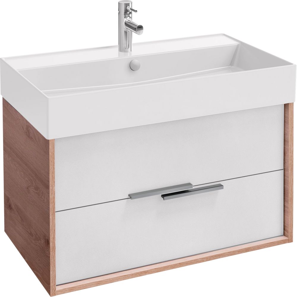Тумба с раковиной Jacob Delafon Vivienne 80 - это идеальное сочетание современного дизайна и функциональности от известного французского бренда. Выполненная в изысканном сочетании дуба давос и белого блестящего цвета, эта мебель станет превосходным дополнением к любому интерьеру ванной комнаты. Подвесная конструкция и использование высококачественных материалов обеспечивают надежность и удобство в эксплуатации.