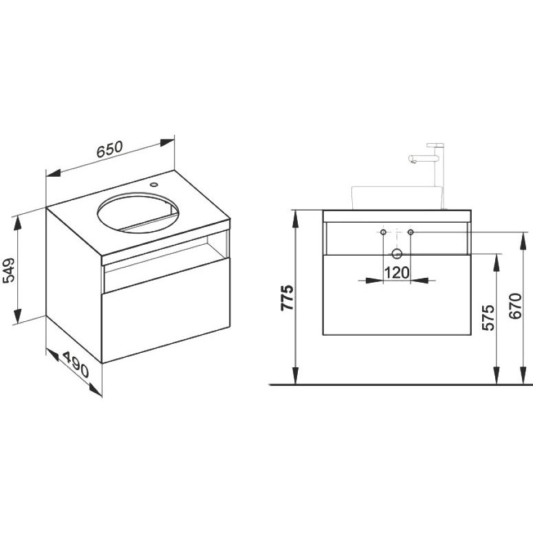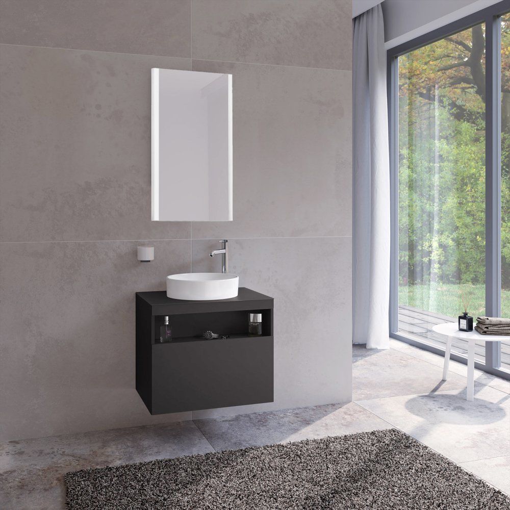 Тумба для комплектов из коллекции Keuco Stageline имеет размеры 65x49x54,9 см, она подвесная, что придаёт лёгкость интерьеру. Оснащена ящиками и полками, с механизмом доводчика для плавного закрывания. Корпус выполнен из МДФ, покрыт ламинатом, фасад из стекла. Подходит для использования с раковинами-чашами, дополнительно оборудована сифоном. Раковина имеет габариты 40x40 см, изготовлена из керамогранита, и комплектуется донным клапаном. Раковина оснащена отверстием для сифона диаметром 3,2 см.