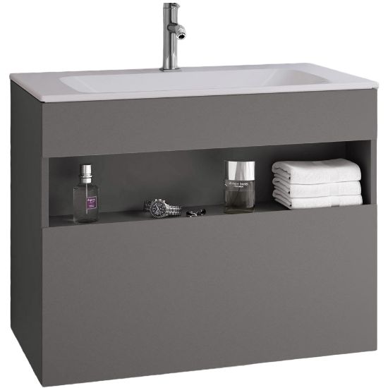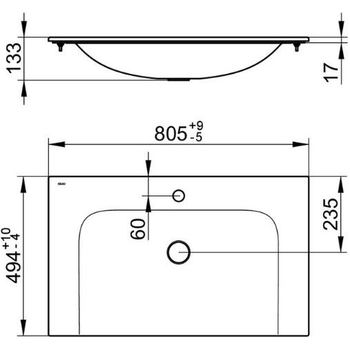 Мебельная раковина Keuco Plan имеет размеры 81,4x50,4 см и изготовлена из полимерной керамики. В ней предусмотрено одно готовое отверстие для смесителя, а слив-перелив входит в комплект, что облегчает установку. Для корректной работы предполагается покупка донного клапана отдельно.