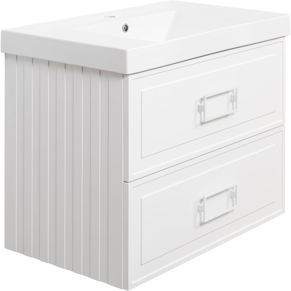 Тумба La Fenice Cubo Twin 80 белая имеет размеры 77,6x49x61,3 см и предназначена для установки на стену, создавая эффект легкости и воздушности в пространстве. Корпус и фасад тумбы выполнены из прочного МДФ с эмалированным покрытием, что обеспечивает стойкость к воздействию влаги и легкость в уходе. Надежные ящики оснащены механизмом доводчика, гарантируя мягкость и тишину при закрывании.