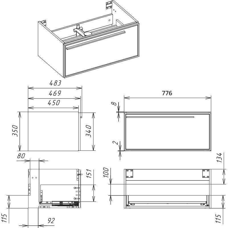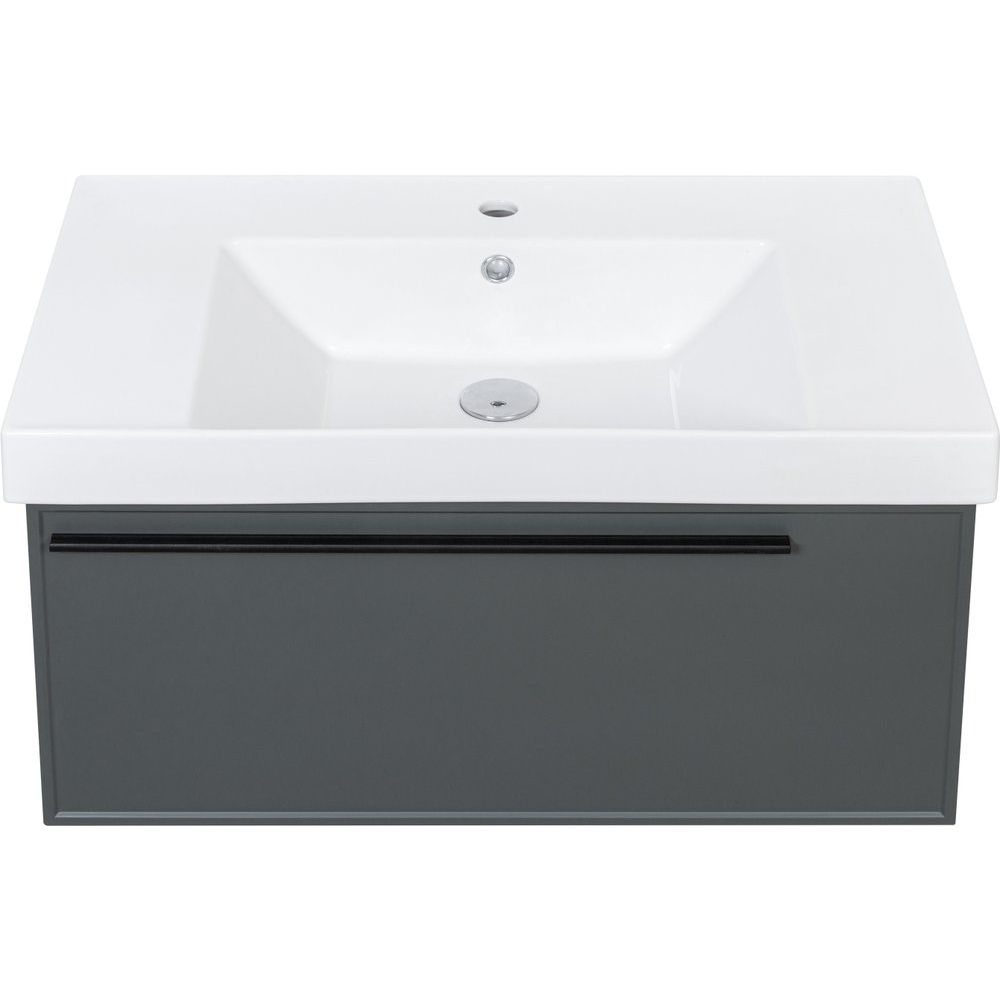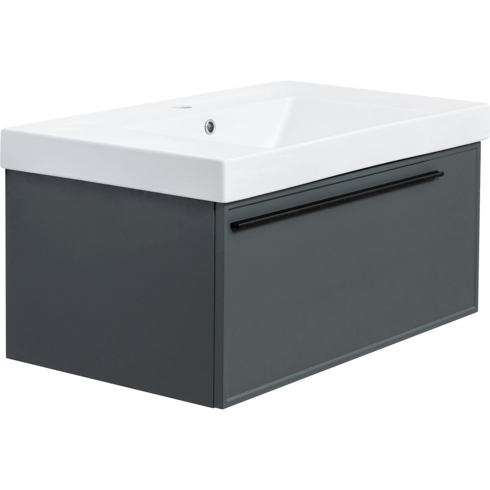 Тумба для комплекта La Fenice Elba 80 серая имеет габариты 77,6x48,3x35 см и выполнена из ЛДСП с эмалевым покрытием, фасад из МДФ. Подвесная конструкция позволяет легко интегрировать ее в практически любой интерьер. Она оснащена механизмом доводчика, обеспечивающим плавное закрывание черных ящиков.