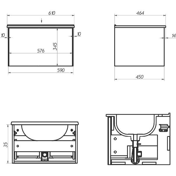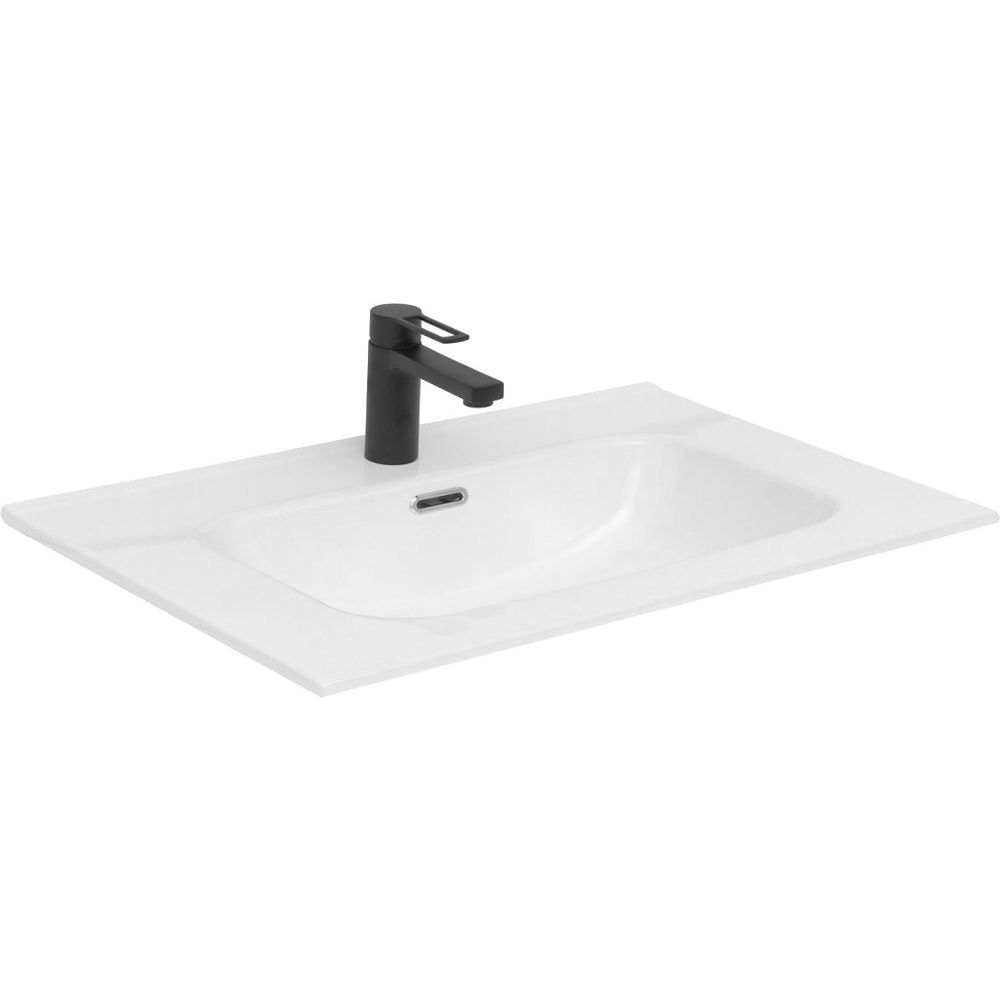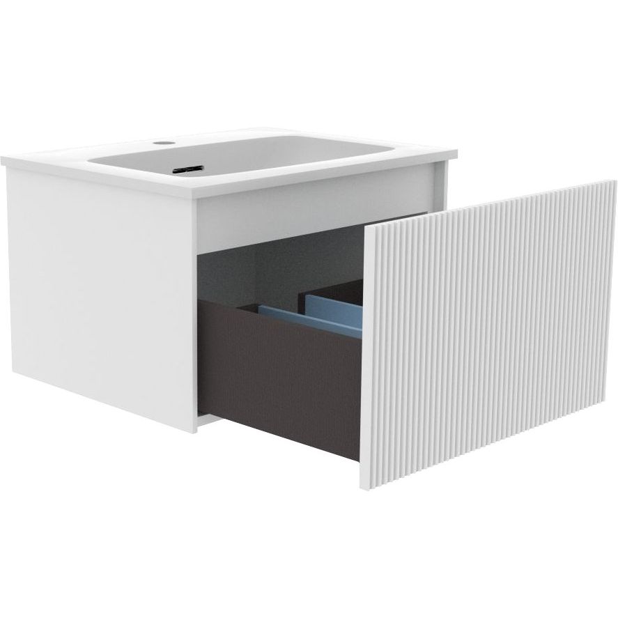 Мебельная раковина из фаянса с размерами 61x46,5 см гармонично дополняет комплект. Оснащенная встроенным слив-переливом, она предусматривает одно готовое отверстие под смеситель. Обратите внимание, что донный клапан приобретает отдельно, а раковина оснащена стандартным местом для сифона диаметром 3.2 см.
