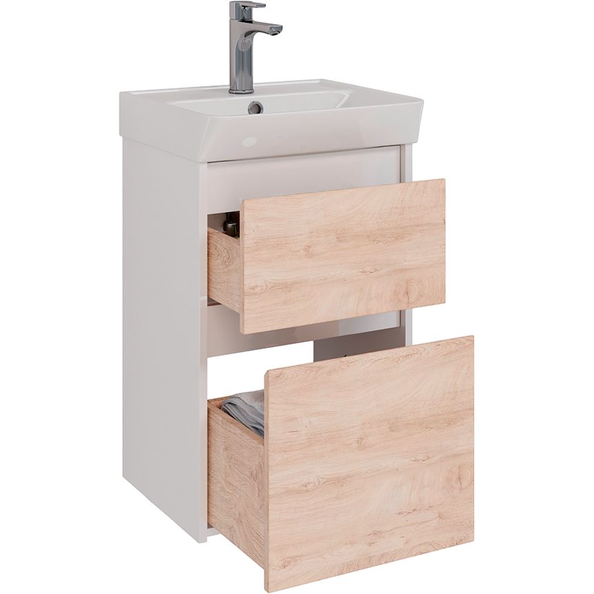 Тумба с раковиной Lemark Combi 45 в стильном сочетании "дуб кантри" и белого глянца — идеальное решение для современной ванной комнаты. Этот комплект включает в себя функциональную тумбу и вместительную раковину из фаянса, разработаны специалистами ведущего чешского бренда Lemark. Изделие гармонично впишется в любой интерьер, добавив ему нотку уюта и элегантности.