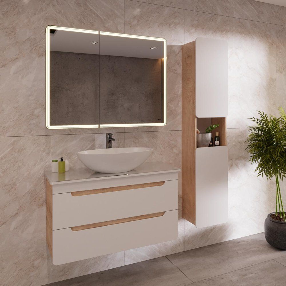 В комплект входит тумба для ванной Lemark Olivia 100 дуб кантри. Ее размеры составляют 95,8x44,5x54 см, она подвесная и оснащена механизмом доводчика для плавного закрывания. Корпус выполнен из ЛДСП и ламинирован, а фасад — из МДФ с глянцевой эмалью. Гарантия на изделие распространяется на 5 лет, производится в Чехии.