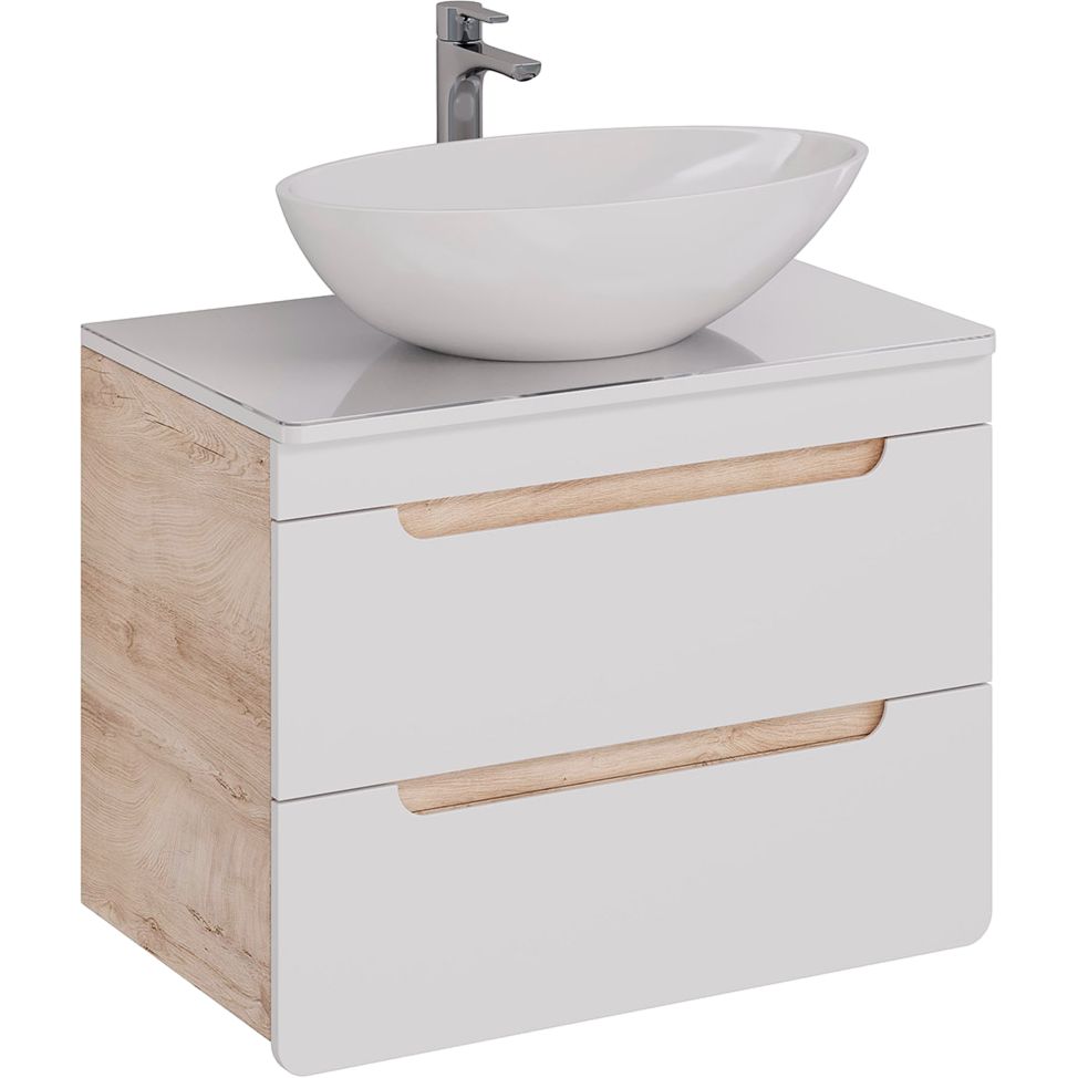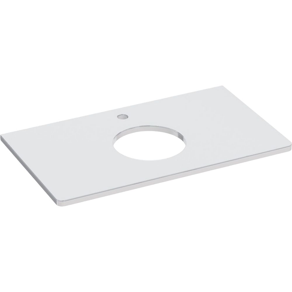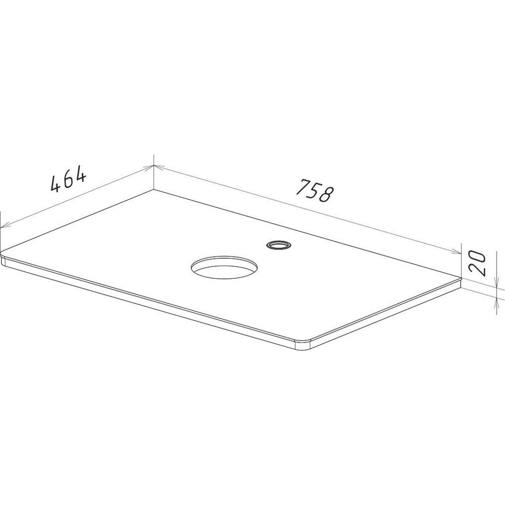 Столешница коллекции Olivia выполнена из МДФ и стекла, покрытого эмалью, с готовым отверстием под смеситель размером 75.8x46.4x2 см, гармонично дополняет композицию.