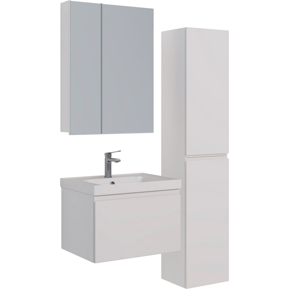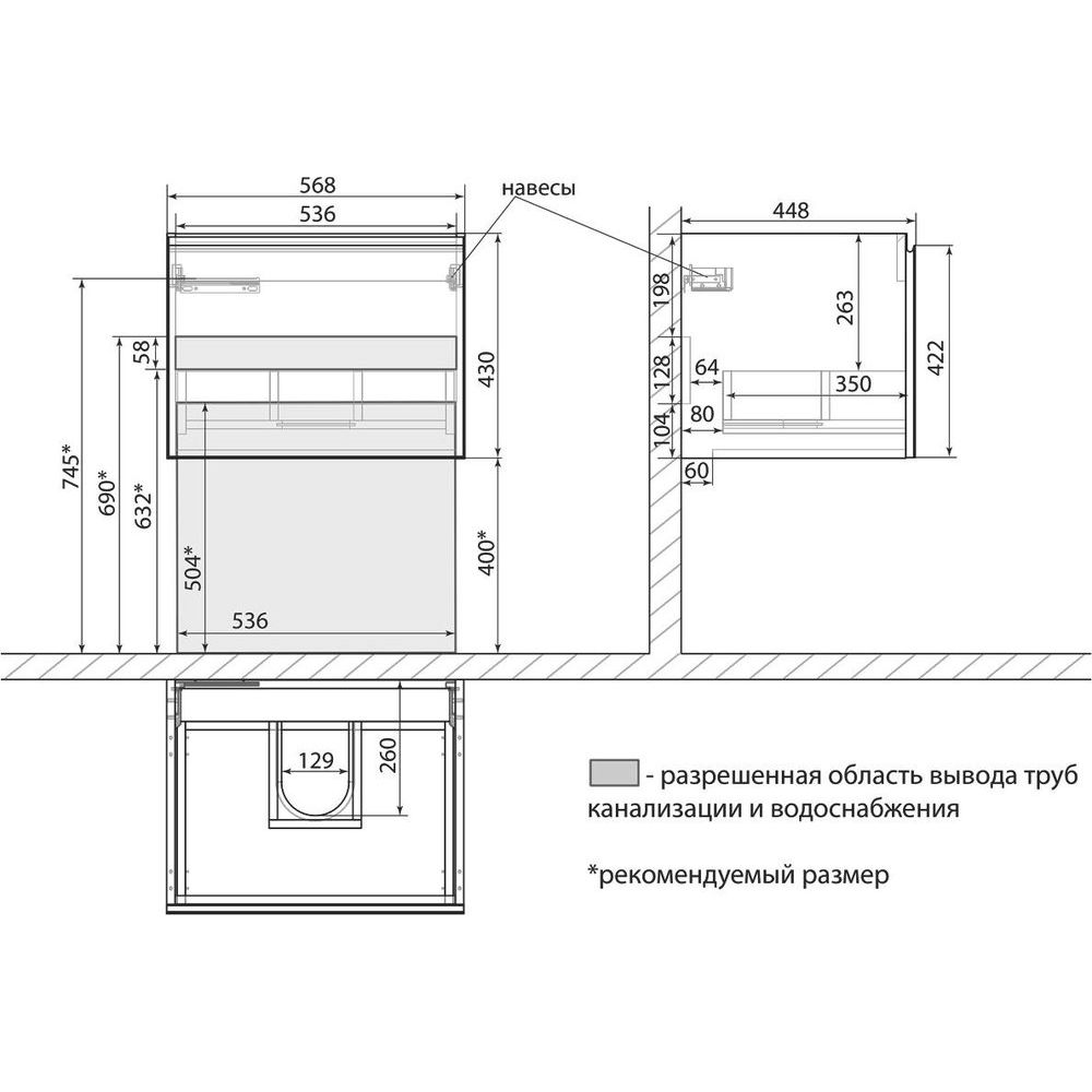 Тумба для комплекта Lemark Veon mini 60 представлена в белом глянцевом исполнении и снабжена одним вместительным ящиком. Габариты составляют 56,8x44,8x43 см, что делает ее компактной и удобной в использовании. Подвесная конструкция упрощает уход и придает визуальной легкости.