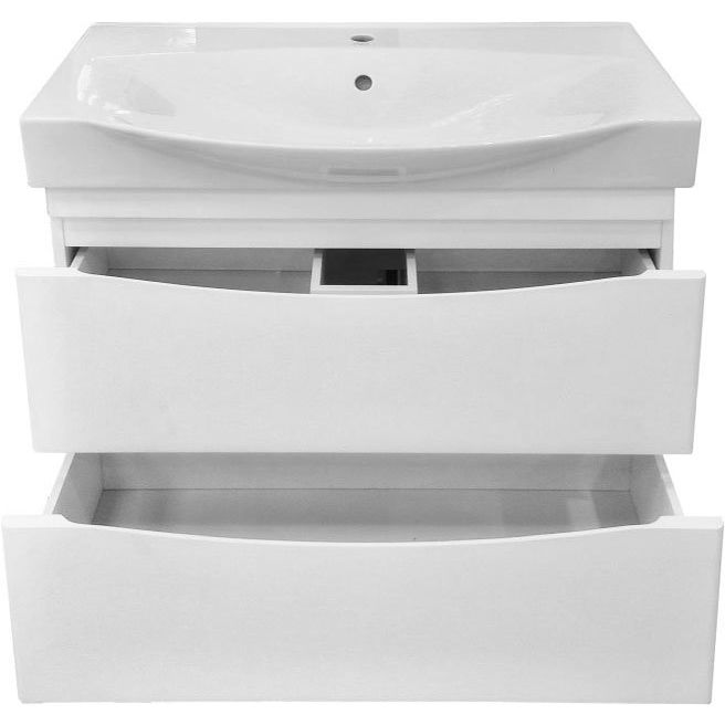 Тумба Misty Элвис 85 белая сконструирована с учетом основных потребностей современной ванной комнаты. Корпус выполнен из ДСП, а фасад — из МДФ, оба покрыты прочной эмалью. Габариты тумбы составляют 83,3x37,6x73,5 см, и она установлена на опорные ножки, что обеспечивает дополнительную устойчивость. В комплекте предусмотрены ящики с механизмом доводчика, что делает их использование особенно удобным.