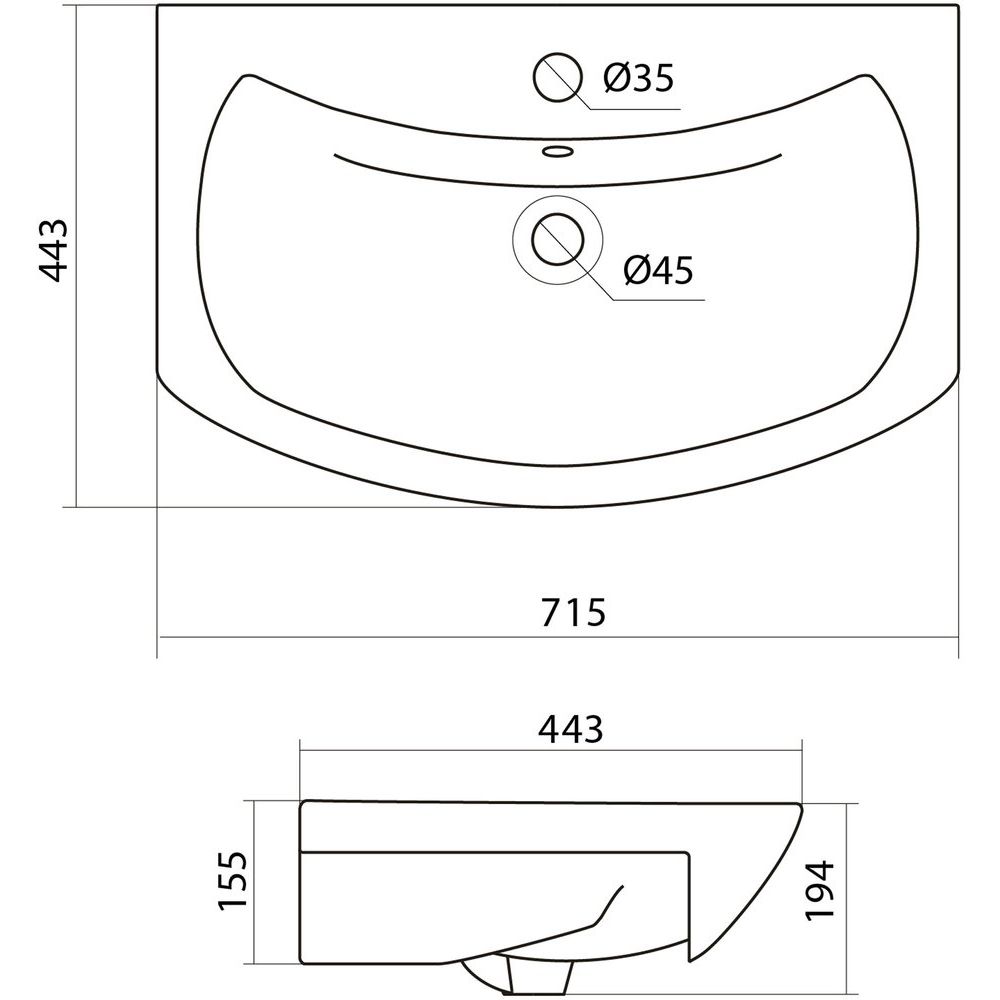 Раковина, выполненная из фарфора, дополнена одним отверстием под смеситель и предназначена для сифона диаметром 3.2 см. Отметим, что донный клапан и слив-перелив приобретаются отдельно, что позволяет выбрать наиболее подходящие элементы для вашей ванны. Срок гарантии на раковину — 10 лет, страна производства — Россия.