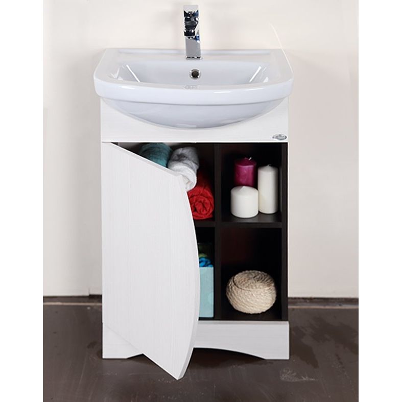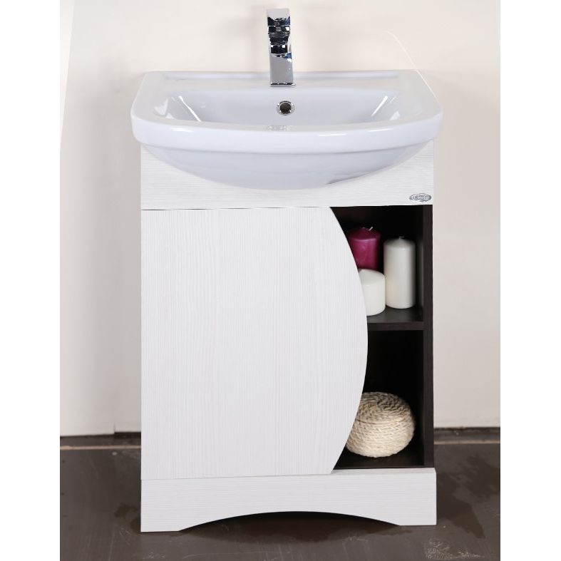 Тумба с раковиной Onika Дуэт 52.01 — это стильное решение от известного российского бренда Onika для оформления ванной комнаты. Привлекательная конструкция и оригинальный дизайн, основанный на игре контрастов темного и светлого дерева, добавят изюминку в ваш интерьер. Тумба изготовлена из шпонированной ДСП, благодаря чему она отличается повышенной прочностью и долговечностью. Распашные двери эффективно защищают содержимое от пыли и брызг, а современный доводчик обеспечивает их плавное и бесшумное закрытие. Открытая полка служит для установки декоративных элементов, позволяя добавить индивидуальности. Фарфоровая полукруглая раковина устойчива к загрязнениям и легко очищается, обеспечивая комфорт в ежедневном использовании.