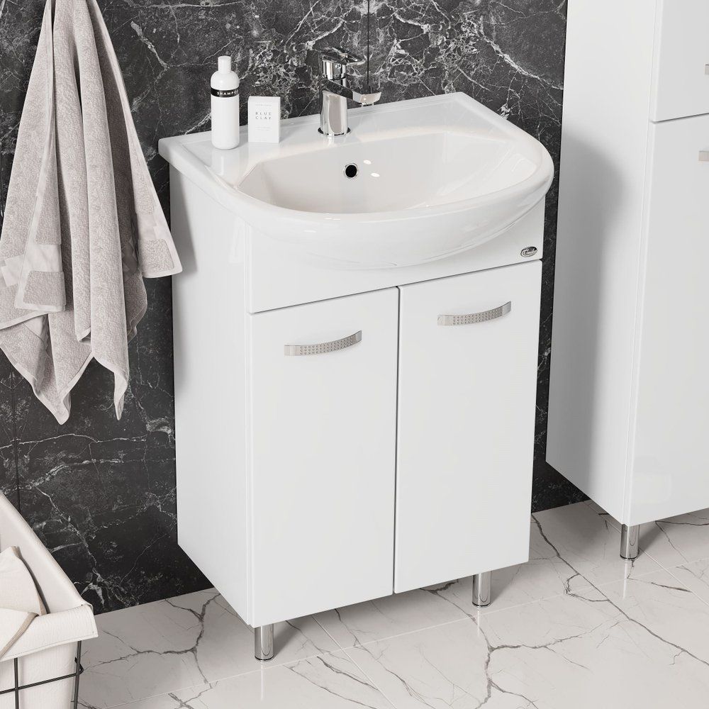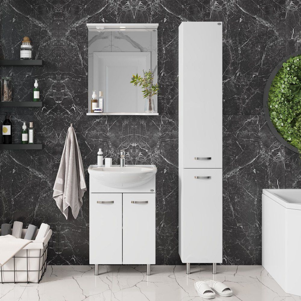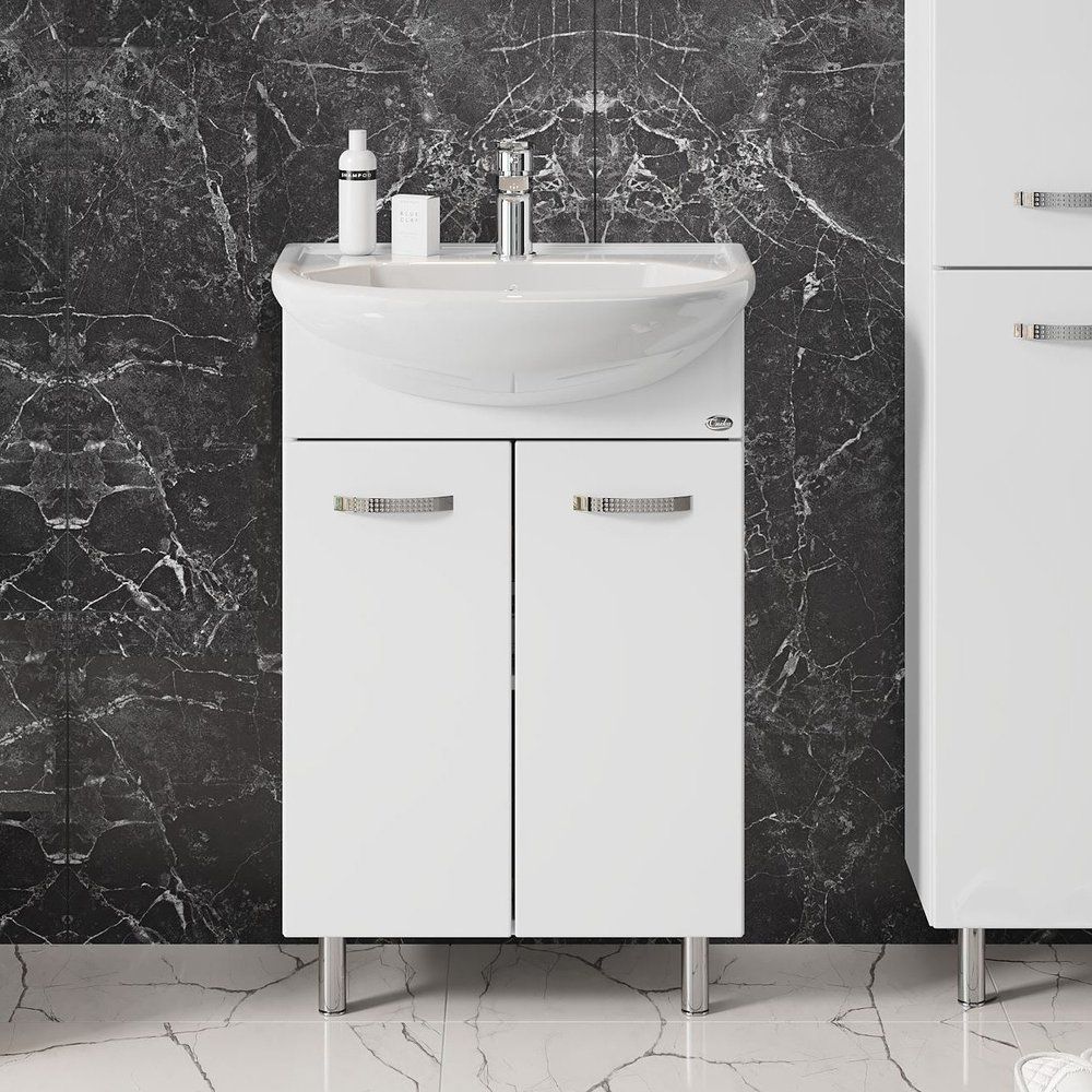 Тумба для комплекта Onika Коралл 50.10 имеет размеры 49x30x68 см и предназначена для напольной установки. Корпус выполнен из ЛДСП с ламинатным покрытием, что обеспечивает высокую устойчивость к влаге. Фасады изготовлены из МДФ и покрыты пленкой, подчёркивая стиль и актуальность дизайна. Комплектуется хромированной фурнитурой без механизма доводчика. Раковина Rosa Уют 50 изготовлена из фаянса с готовым отверстием под смеситель и встроенным сливом-переливом. Гарантия на тумбу составляет 2 года, на раковину — 5 лет, произведено в России.