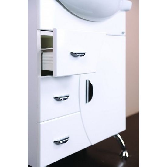 Тумба Onika Луна 60.106 предлагает оптимальные размеры 56x33,6x83 см, обеспечивая вместительность без утяжеления интерьера. Изготовлена из ДСП с фасадом из МДФ, покрытого пленкой, и имеет хромированную фурнитуру. Конструкция тумбы напольная и оснащена дверками без механизма доводчика. Комплектуется мебельной раковиной Santek 60 размером 60,5x44,5 см из фарфора, рассчитанной для сифона диаметром 3,2 см. Раковина снабжена одним готовым отверстием под смеситель и требует приобретения донного клапана и слива-перелива отдельно.