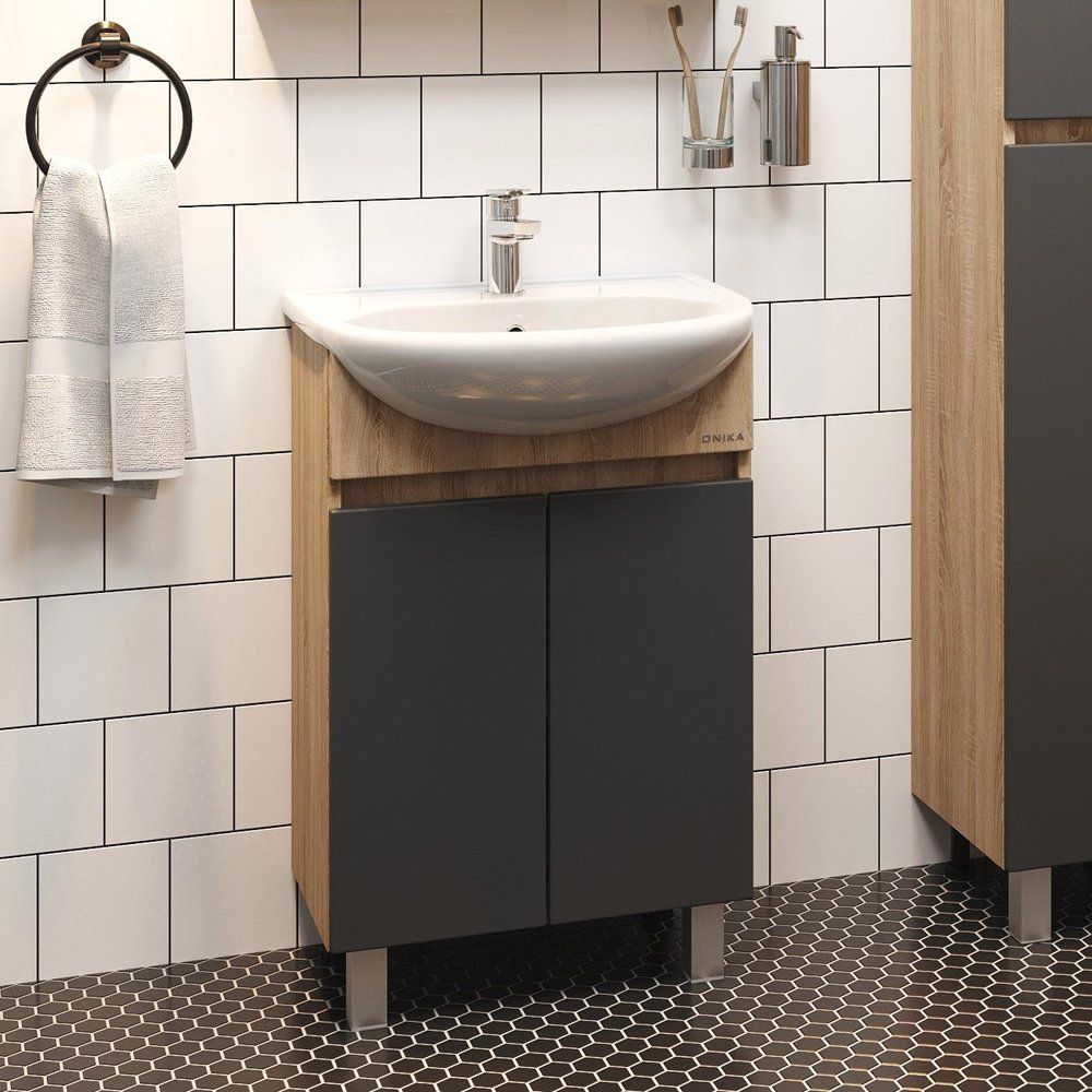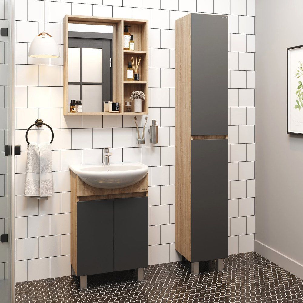 Улучшите комфорт и стиль вашей ванной комнаты с тумбой под раковину Onika Милтон 60 в элегантном сером цвете с декором в оттенке дуб сонома. Это надежное решение, сочетающее современный дизайн и практичность. Идеальная комбинация тумбы и раковины сделает ежедневные ритуалы проще и приятнее. Мебель для ванной комнаты от Onika гарантирует долговечность и комфорт, что делает каждую покупку действительно выгодной инвестицией в ваш дом.