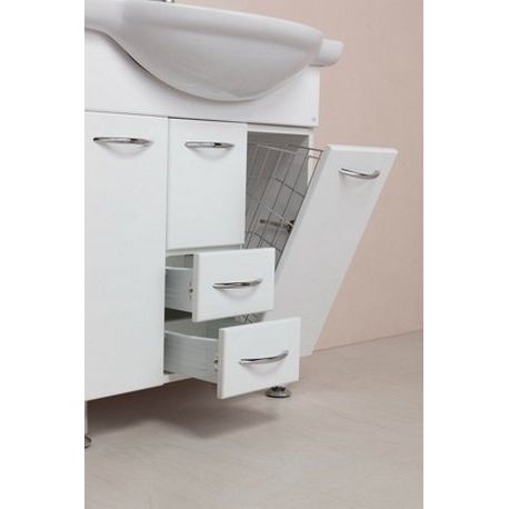 Тумба Onika Моника 75.17 имеет размеры 71x32,6x83 см и предназначена для напольной установки. Изготовлена из прочного ДСП с фасадом из МДФ, покрытым пленкой. Внутри тумбы предусмотрена встроенная бельевая корзина и удобная система хранения с ящиками и дверками. Раковина Santek Байкал, выполненная из качественного фарфора, имеет размеры 76x50 см и рассчитана на сифон диаметром 3.2 см. Обратите внимание, что донный клапан и слив-перелив приобретаются отдельно.