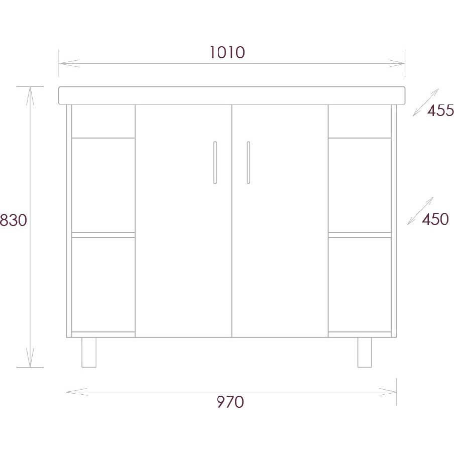 Тумбы серии Onika Тимбер обладают размерами 97x45x78,5 см и предназначены для напольной установки. Корпус выполнен из ЛДСП с ламинатным покрытием, а фасад — из МДФ с пленочным покрытием. Эти тумбы украшены черной фурнитурой и оснащены несъемными внутренними полками, что делает их максимально функциональными.