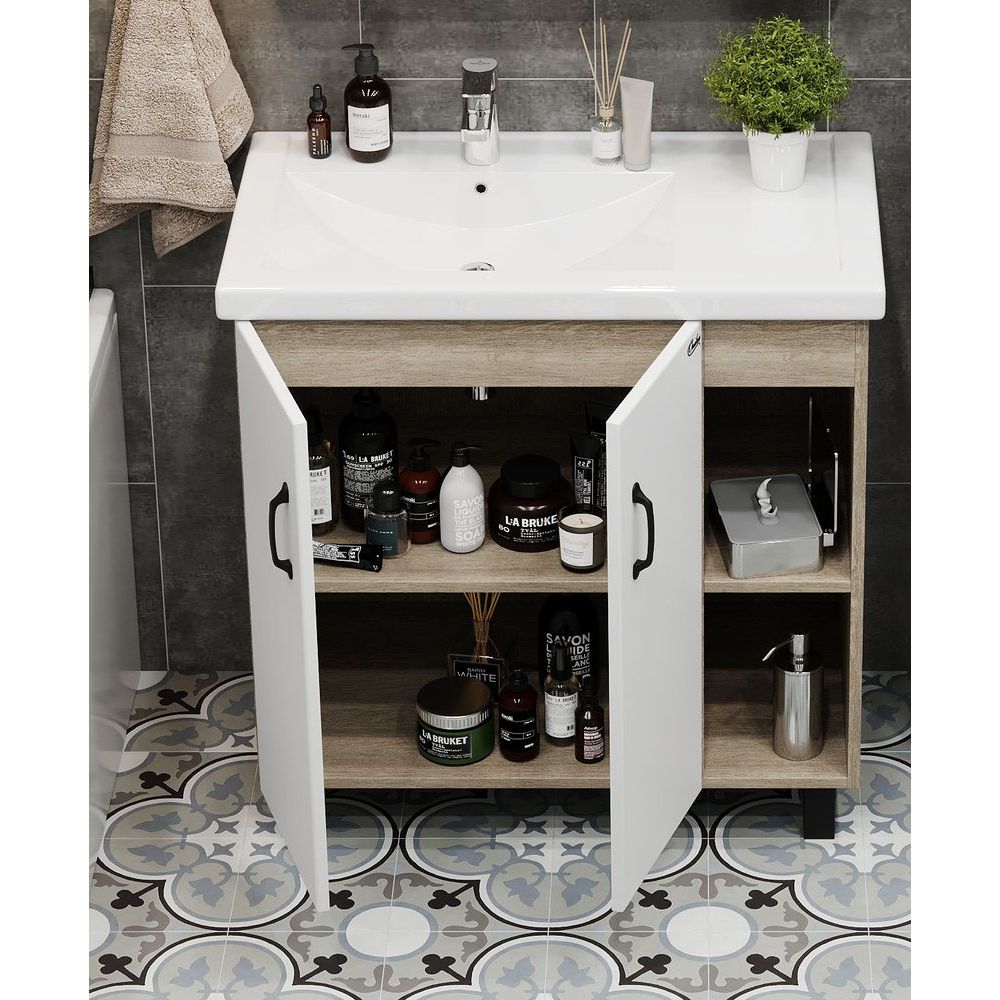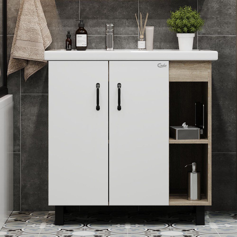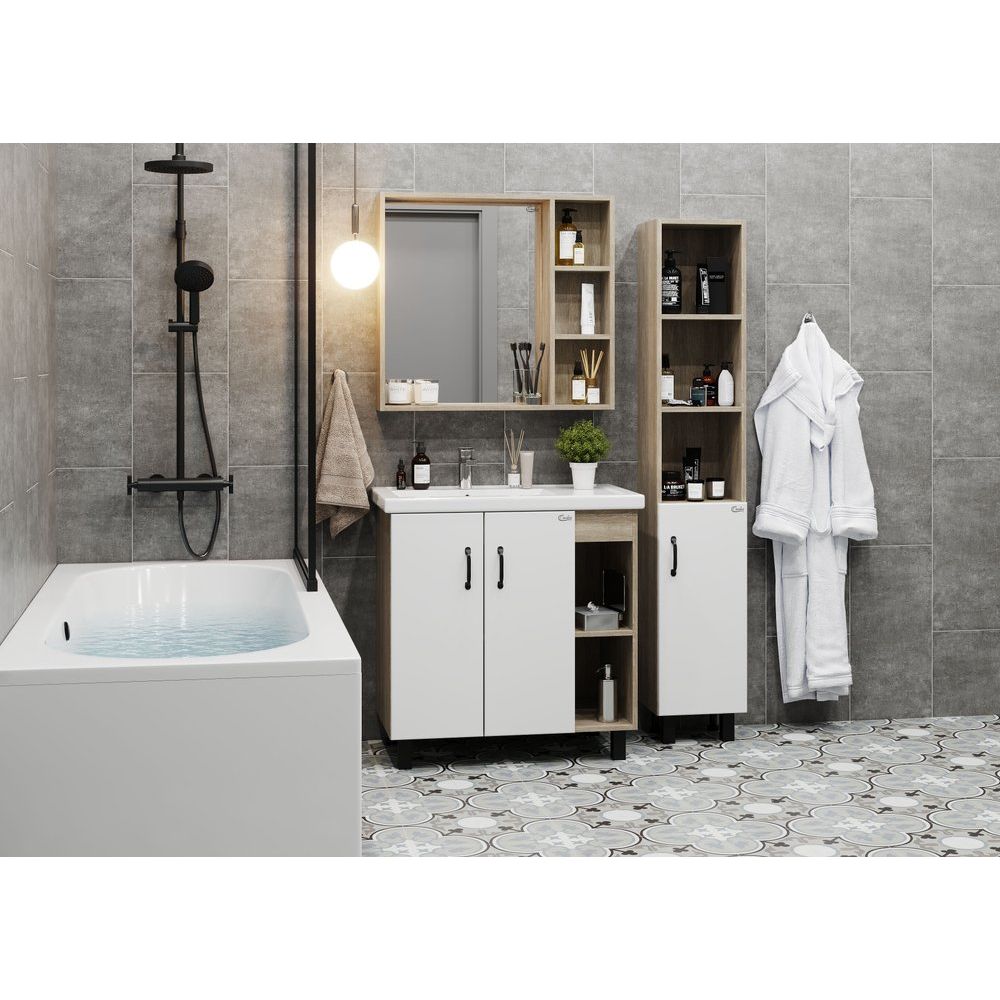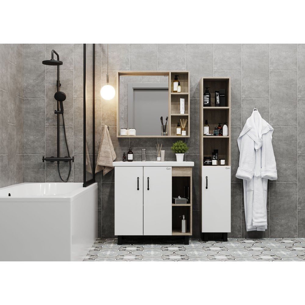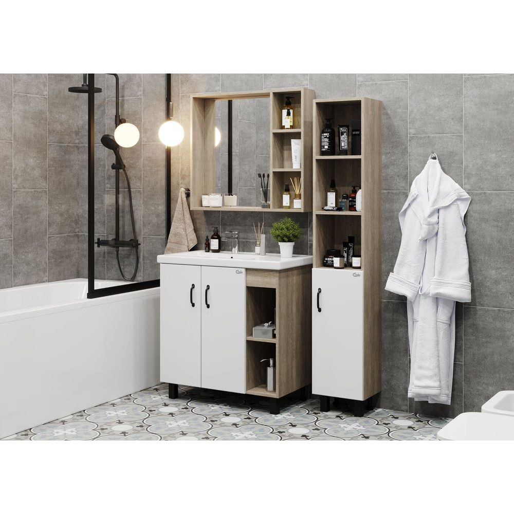 Тумба с раковиной Onika Тимбер 80.10 R — это стильное и функциональное решение для вашей ванной комнаты. Она комбинирует современный дизайн и практичные материалы, создавая атмосферу комфорта и уюта. Сочетание белого цвета с оттенком дуб сонома делает эту модель универсальной, вписывающейся в любой интерьер.