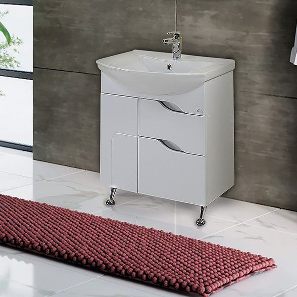 Тумба Onika Веронэлла 75.13 имеет компактные габариты 72,5x33x83 см, что делает её идеальной даже для небольших ванных комнат. Напольное исполнение добавляет тумбе устойчивости и надежности. Корпус и фасады выполнены из МДФ, покрытого пленкой для защиты от влаги и механических повреждений. Механизмы плавного закрывания и нажимные замки дверей подчеркивают её функциональность.
