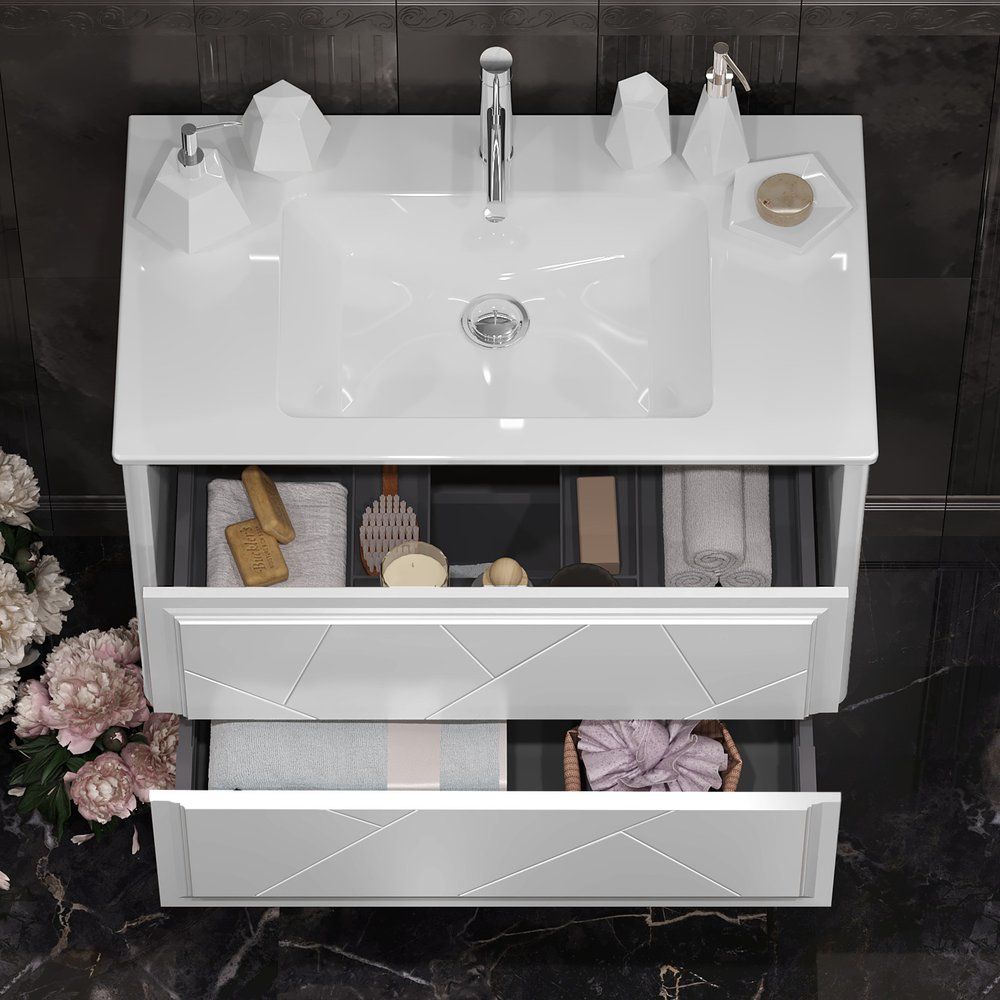Тумба «Opadiris Луиджи» подвесная и компактная, с габаритами 87,4x50,2x49,5 см, выполнена из МДФ с эмалированным покрытием. Ящики оснащены нажимным механизмом, что упрощает доступ к содержимому без ручек. Мебельная раковина Opadiris CeraStyle Ibiza 91 изготовлена из фаянса и имеет встроенный слив-перелив, а также готовое отверстие под смеситель. Габариты раковины составляют 91x51 см, подходит для сифона диаметром 3.2 см. Обратите внимание, что донный клапан приобретается отдельно. Гарантия на тумбу составляет 5 лет, а на раковину — 3 года. Производство осуществляется в России и Турции, что гарантирует соответствие высоким стандартам качества.