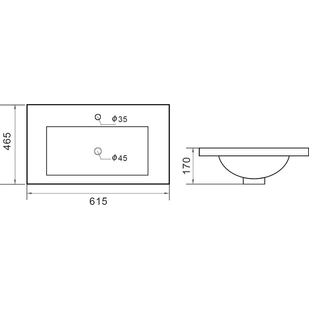 Мебельная раковина Orange B03-610W выполнена из высококачественного фарфора с глянцевым покрытием и имеет размеры 61,5x46,5 см. Она оснащена встроенным сливом-переливом и одним отверстием для смесителя. Гарантия на раковину — 5 лет.