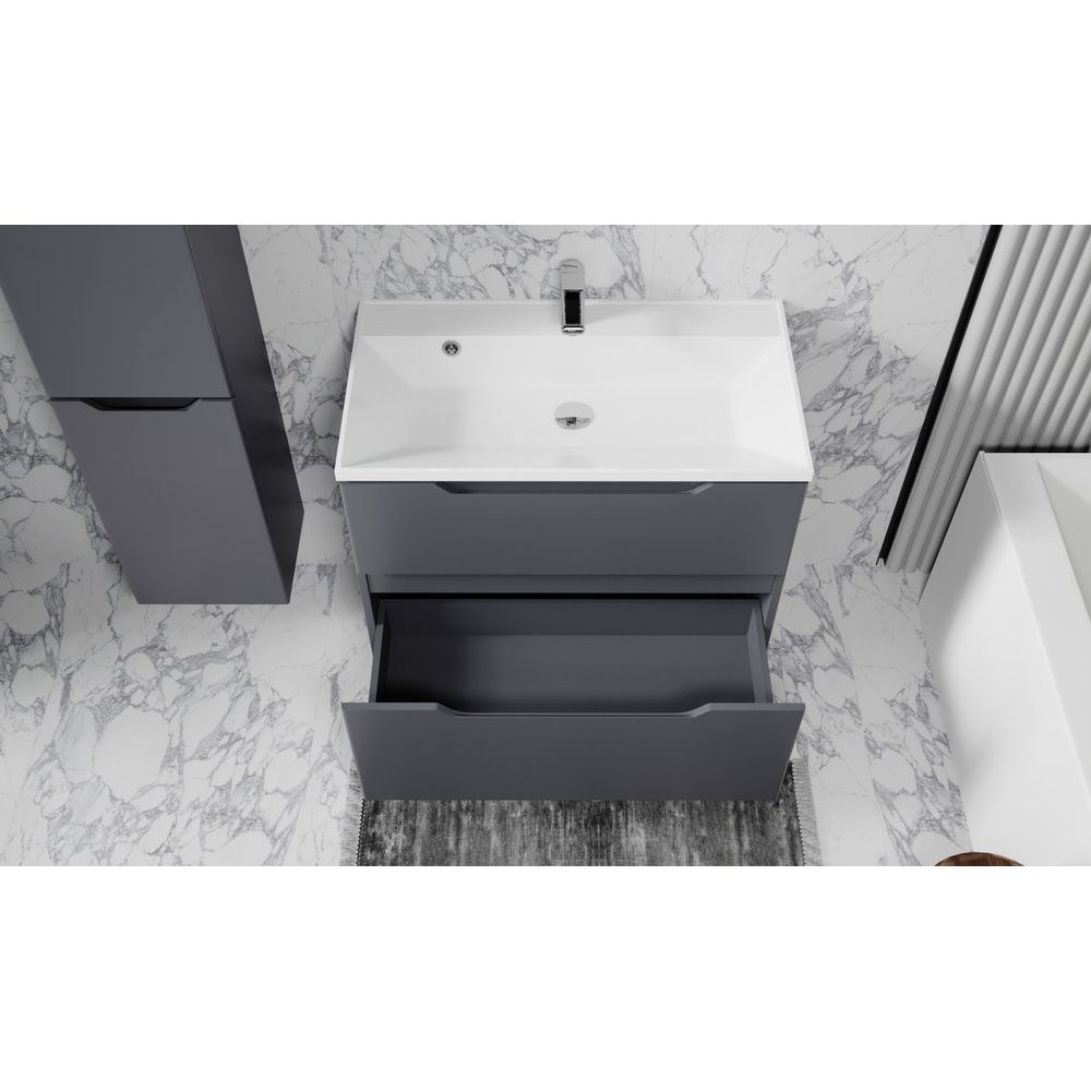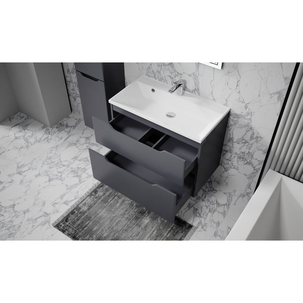 Тумба с раковиной Raval Wector 80 в изысканном антрацитовом цвете станет не только функциональным дополнением вашей ванной комнаты, но и стильным акцентом в интерьере. Подвесная конструкция придаёт легкость и визуально увеличивает пространство, облегчая уборку. Элегантный дизайн, дополненный высококачественными материалами, делает это изделие идеальным выбором для современного жилища.