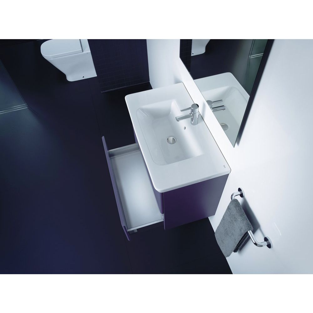 Вдохните свежесть испанского дизайна в ванную комнату с тумбой с раковиной Roca Gap 60 фиолетовая! Эта изысканная мебельная программа создана в сотрудничестве с выдающимся промышленным дизайнером Антонио Булло. Белоснежная фарфоровая раковина аккуратно сочетается с подвесной тумбой, уникального фиолетового оттенка, изготовленной из влагостойкого МДФ. Высококачественная матовая пленка фасадов и корпуса придает изделию благородный вид и защищает от разводов и пятен. Две удобные секции тумбы рационализируют пространство и скрывают сифон, а интегрированные доводчики обеспечивают мягкое открытие и закрытие ящиков. Стильные хромированные ручки и сдержанная прямоугольная форма создают акцент, способный оживить даже самый минималистичный интерьер.