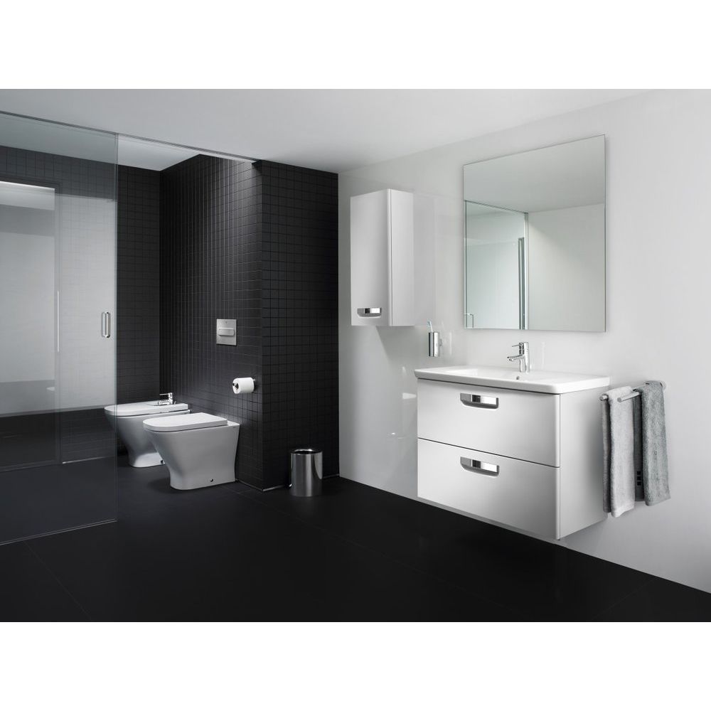 Тумба Roca Gap 70 белый глянец имеет размеры 67,7x41,2x60 см и выполнена подвесной для удобного размещения. Корпус и фасад изготовлены из влагостойкого МДФ, покрытого глянцевой эмалью, с хромированной фурнитурой. Два ящика оснащены доводчиками для плавного закрывания. Гарантия на тумбу составляет 3 года, производство — Испания.