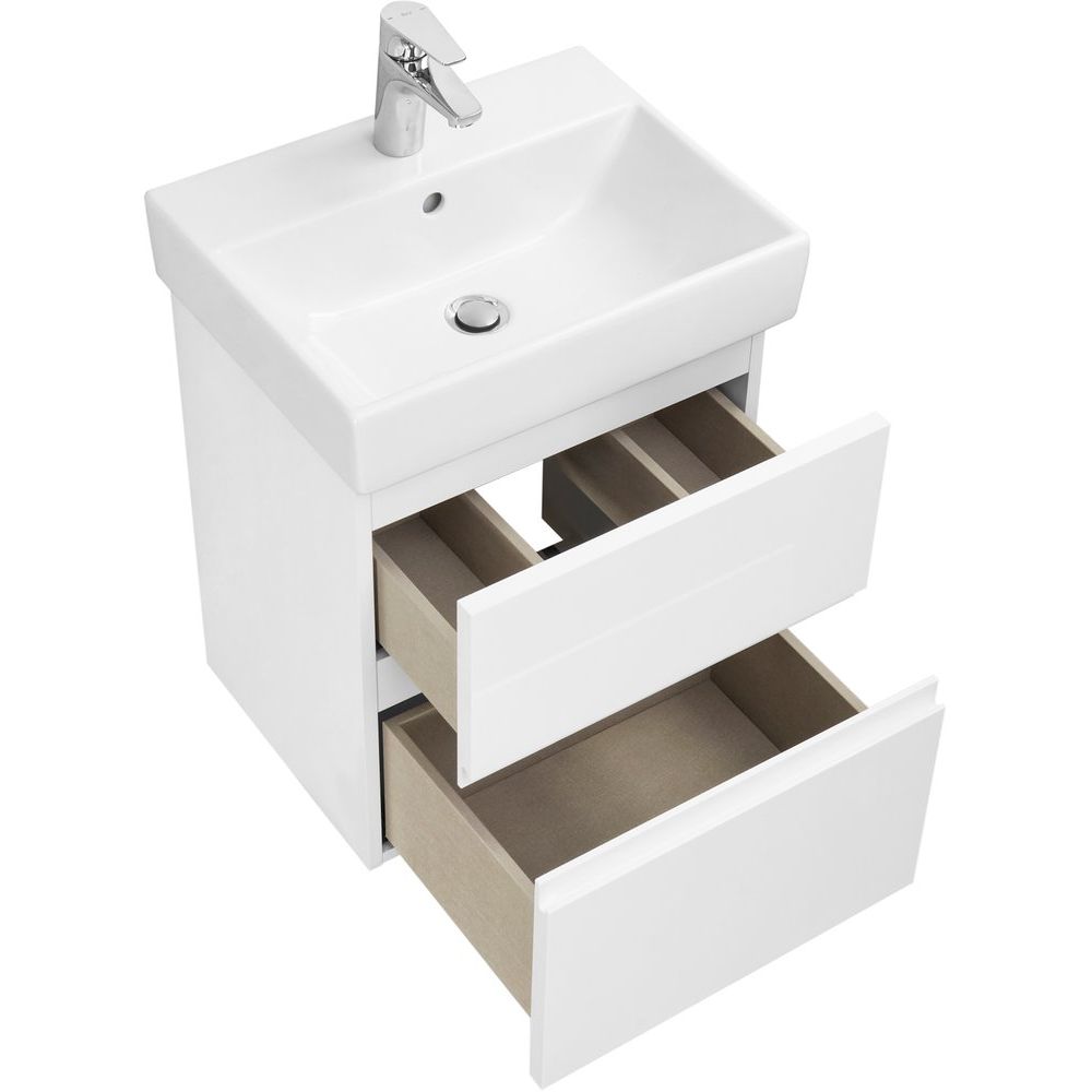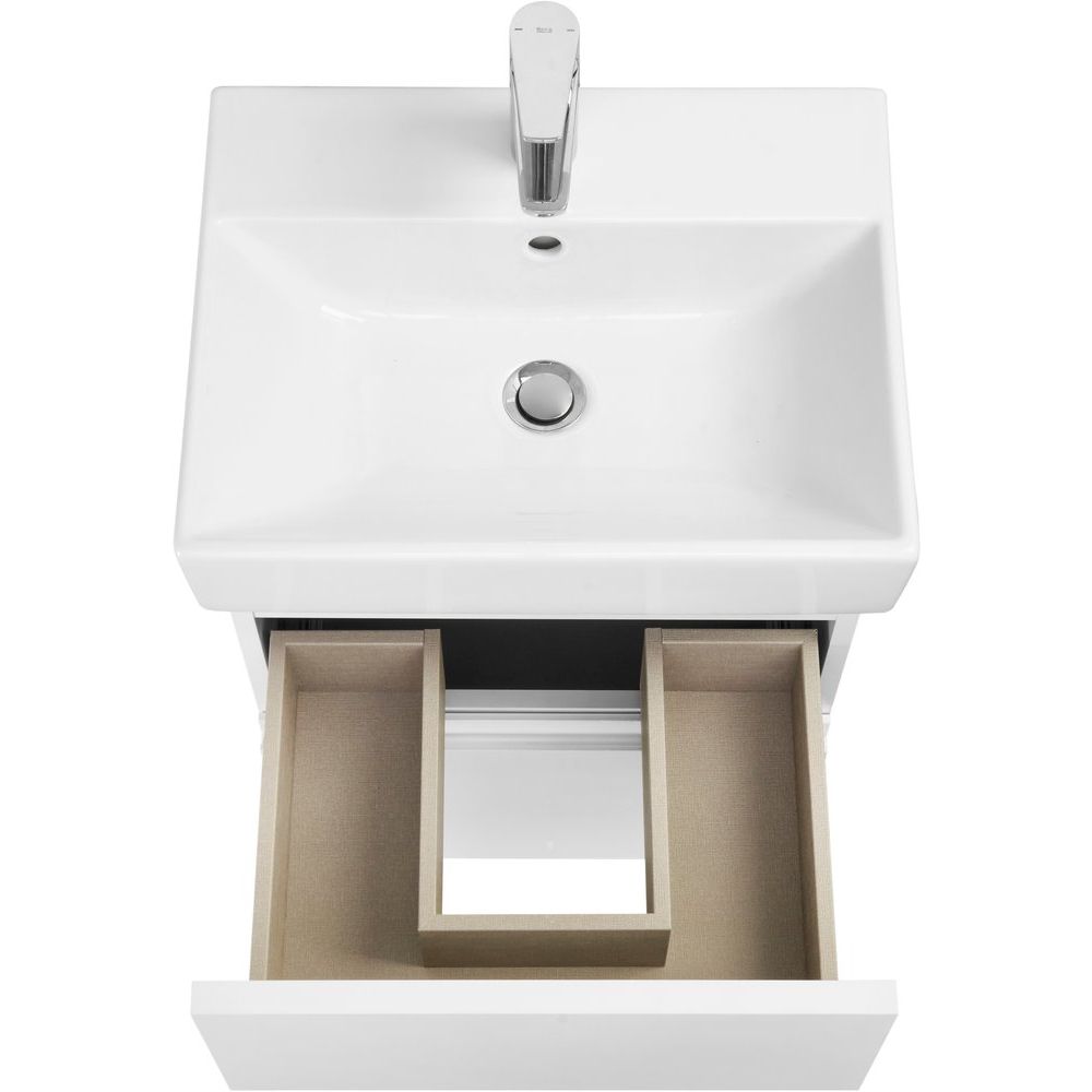 Тумба с раковиной Roca Oleta 50 — это стильное и практичное решение для вашей ванной комнаты. Этот изящный комплект, выполненный в белом глянцевом оформлении, сочетает в себе элегантность и функциональность, создавая атмосферу уюта и современности. Высококачественная фурнитура немецкой компании Hettich обеспечивает легкость и плавность хода выдвижных ящиков, а внутренняя отделка в бежевом текстиле добавляет изысканности и комфорта.