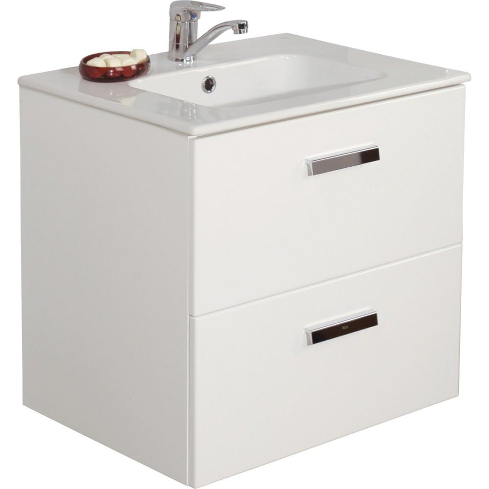 Тумба Roca Victoria Nord размером 58,5x45x56,5 см выполнена в подвесном варианте. Корпус из ДСП покрыт эмалью, а фасад - из МДФ, также с эмалью. Хромированная фурнитура добавляет изысканности. Два ящика оснащены механизмом доводчика для плавного закрытия. Мебель произведена в Испании и имеет 3 года гарантии.