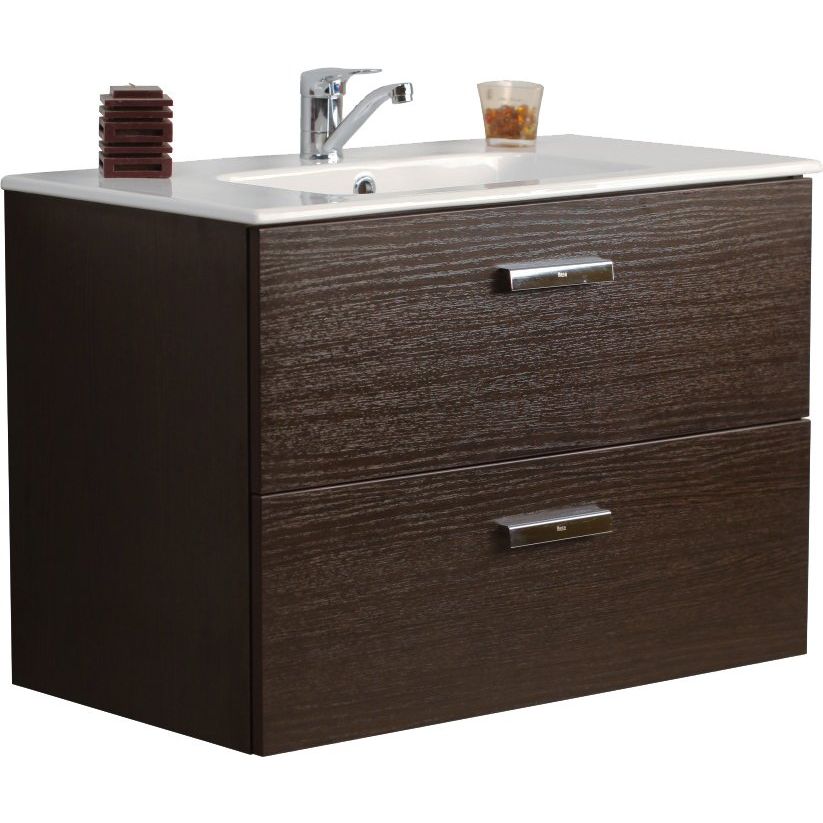 Изделие включает в себя тумбу и раковину из коллекции Roca Victoria Nord. Тумба выполнена в цвете венге и имеет размеры 78,5x45x56,5 см. Подвесная конструкция облегчает уборку и экономит место. Оснащена механизмом доводчика для плавного закрывания ящиков. Материалы корпуса и фасада — ЛДСП с ламинированным покрытием, гарантия на мебель составляет 3 года.