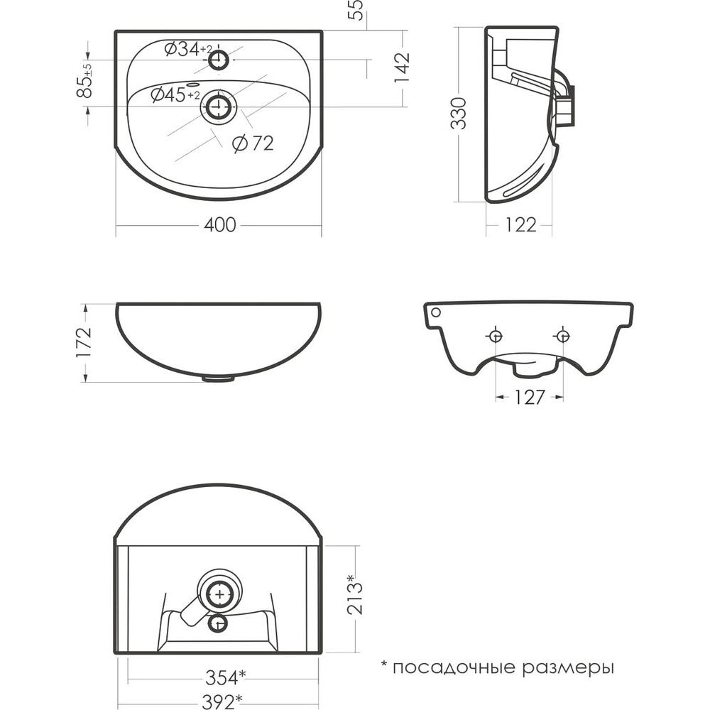 Комплект дополняет рукомойник Sanita Манго 40 из фаянса размером 40x32,5 см. Он оснащен встроенным сливом-переливом и имеет одно отверстие под смеситель. У него предусмотрен слив-перелив в комплекте, однако донный клапан необходимо приобрести отдельно. На рукомойник предоставляется 3 года гарантии.
