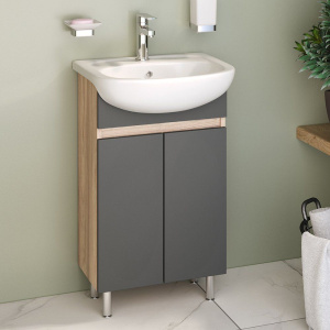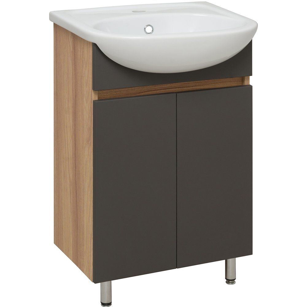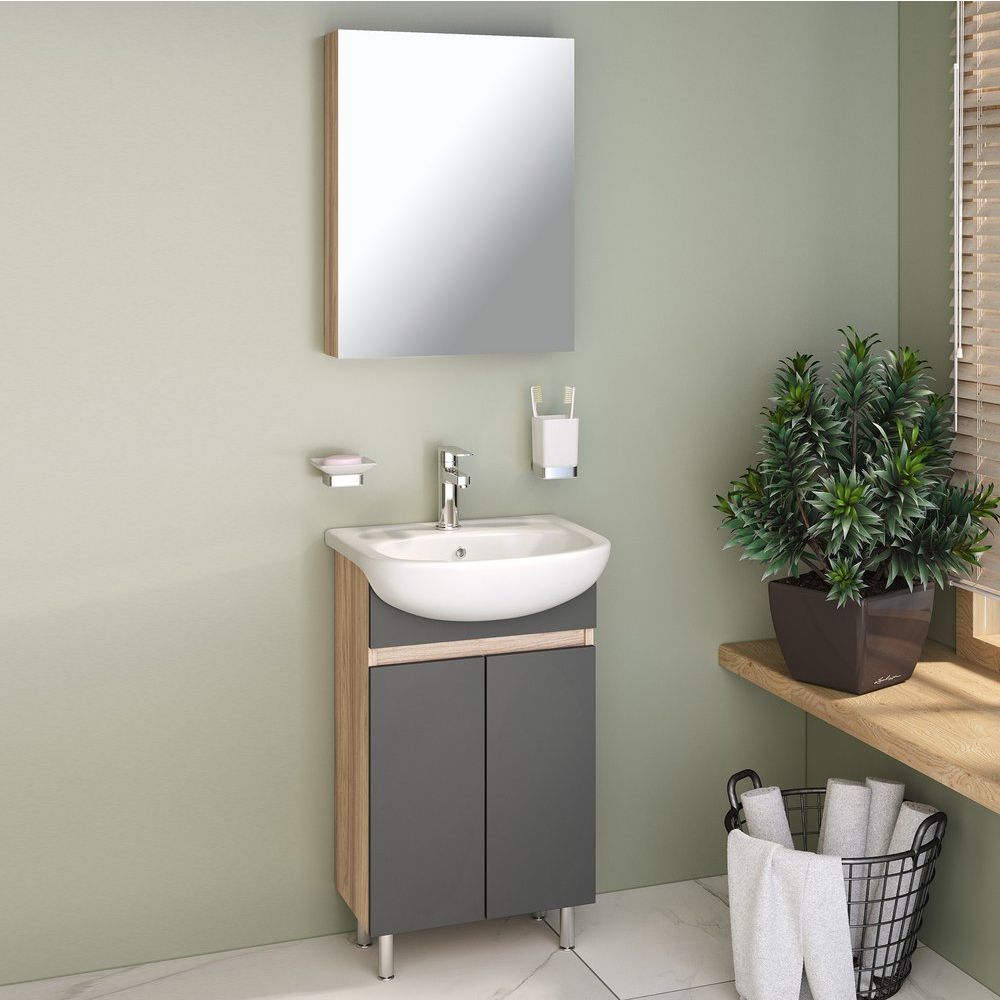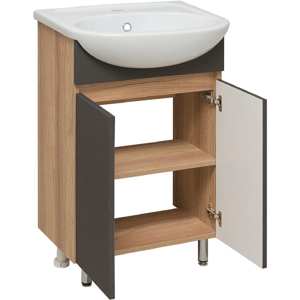Восхитительная тумба с раковиной Runo Лада 50 в цвете графит — изящное и практичное решение для тех, кто стремится создать в ванной комнате атмосферу комфорта и уюта. Этот комплект выделяется стильным дизайном и высоким качеством материалов. Подвесная структура тумбы добавляет легкости интерьеру и упрощает поддержание чистоты, а матовая поверхность гарантирует долговечность.