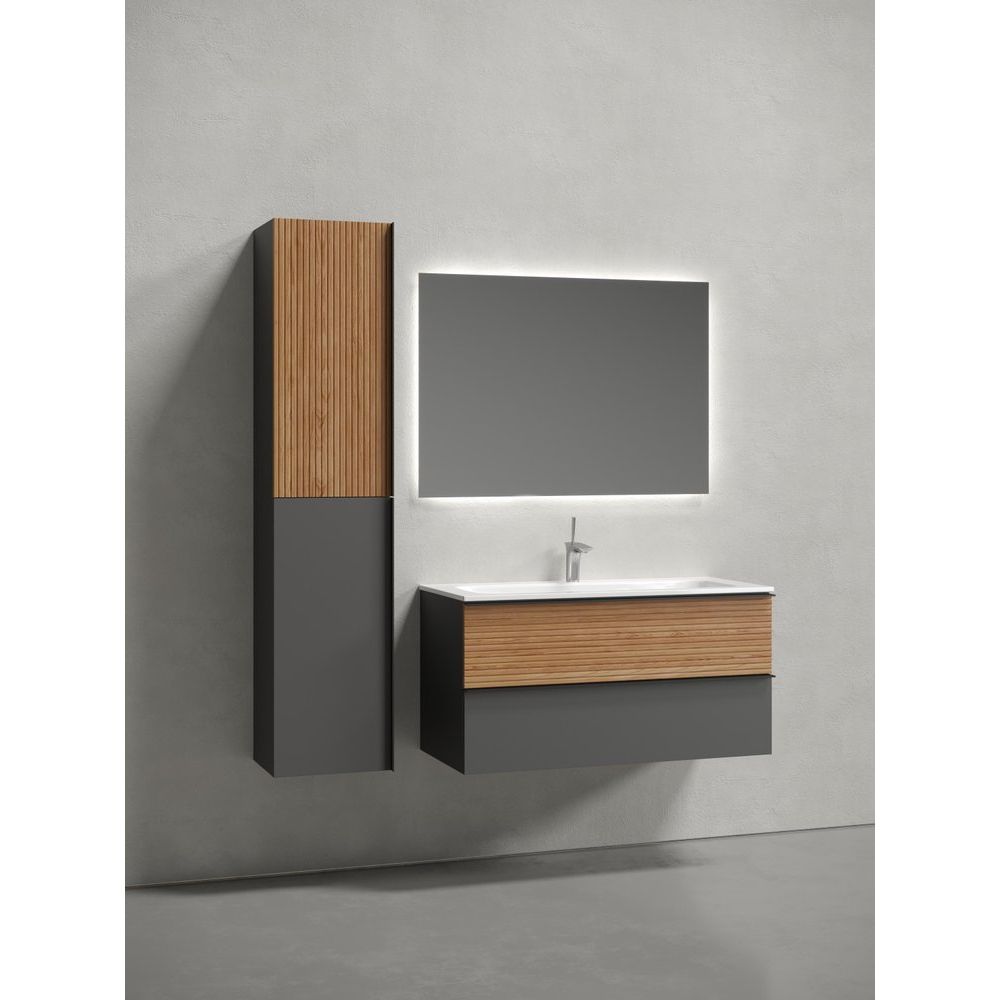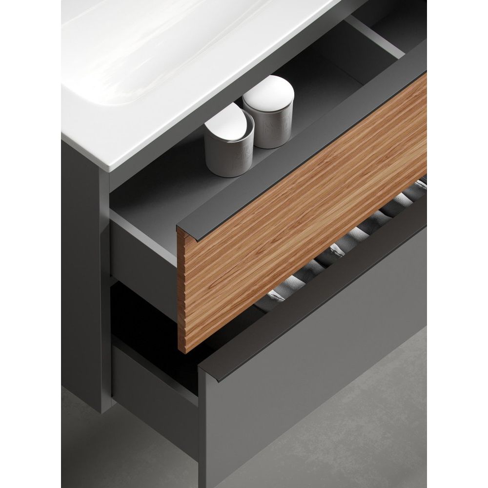 - Изысканный дизайн и цветовое сочетание «дуб красный/графит». Современно смотрится в любой ванной комнате.