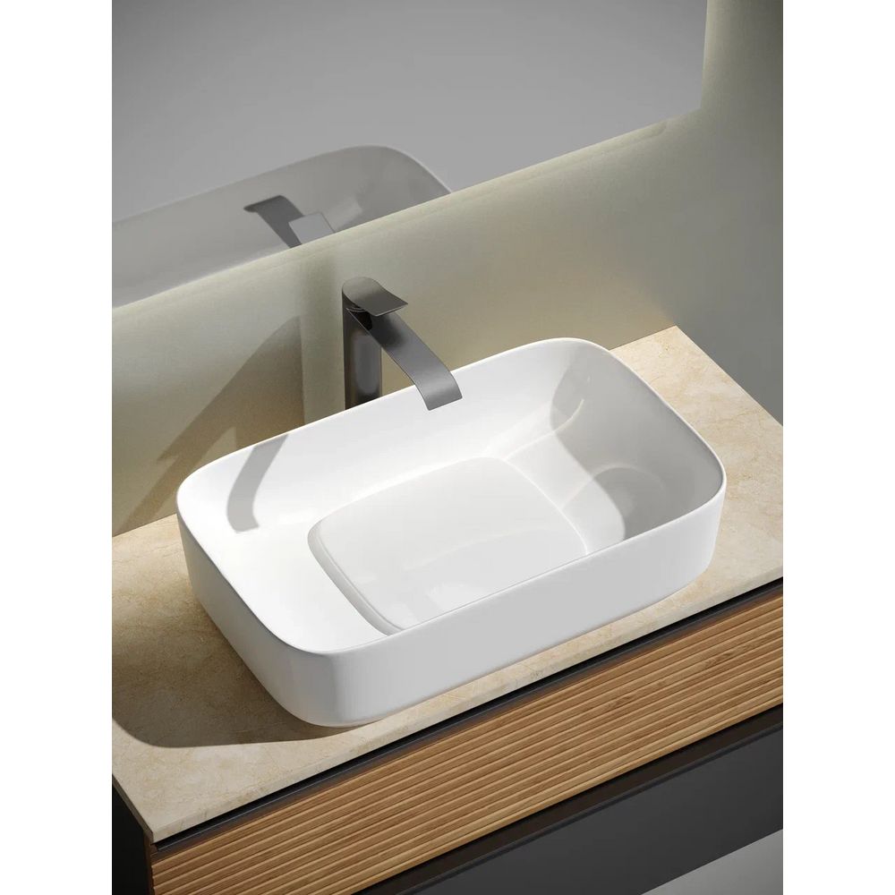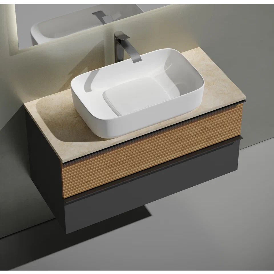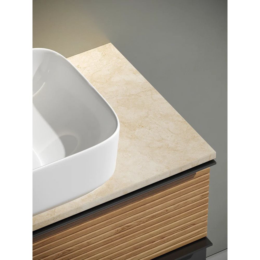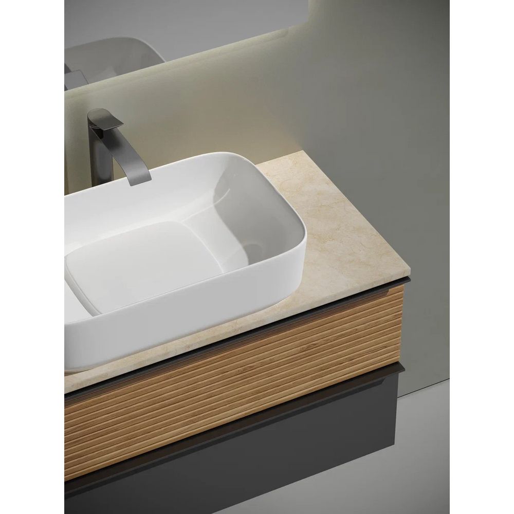 Столешница Sancos TT100A2X из керамогранита не имеет готовых отверстий под смеситель, что позволяет установить необходимый элемент в зависимости от ваших предпочтений. Её размер — 100x46x2.1 см.