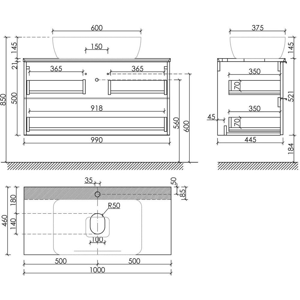 Учитывайте, что для установки данного комплекта вы можете потребоваться подобрать сифон, подходящий по особенностям конструкции тумбы и раковины. Хотя раковина оснащена декоративной накладкой на слив, установка донного клапана не предусмотрена. Столешница из керамогранита идет без отверстий для смесителя, что позволяет более гибко подойти к его выбору.