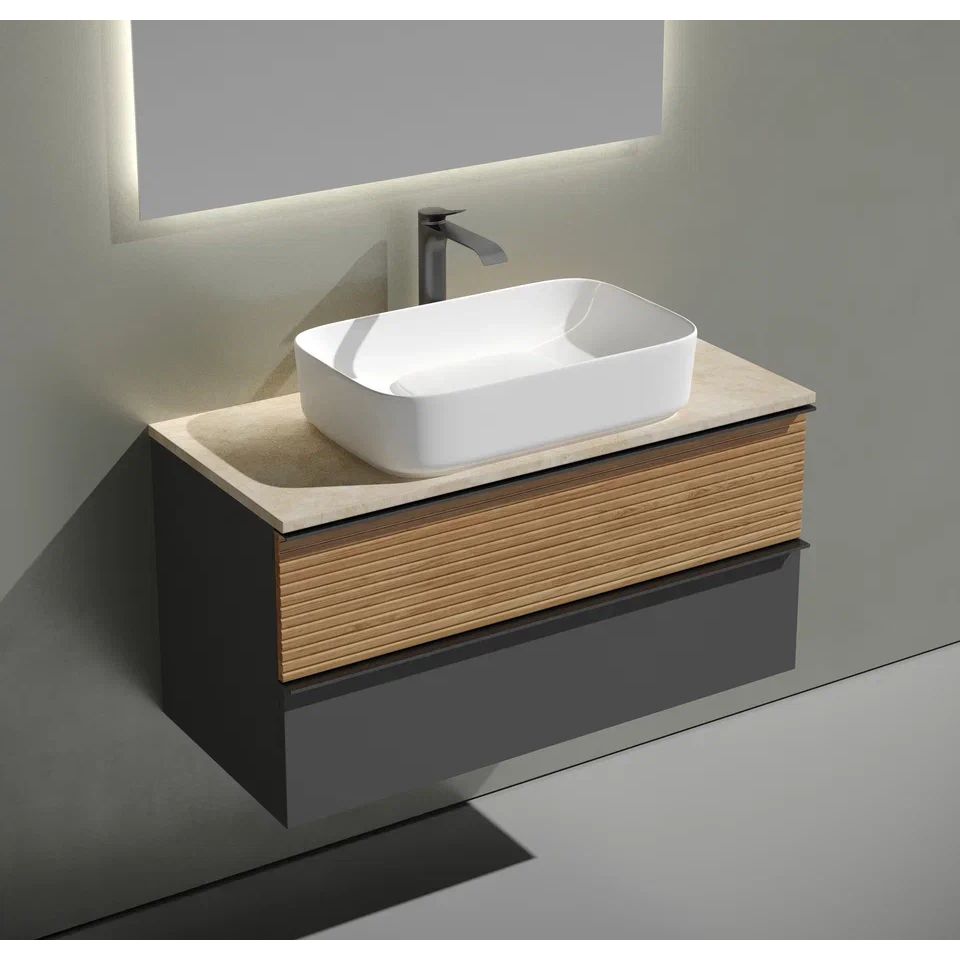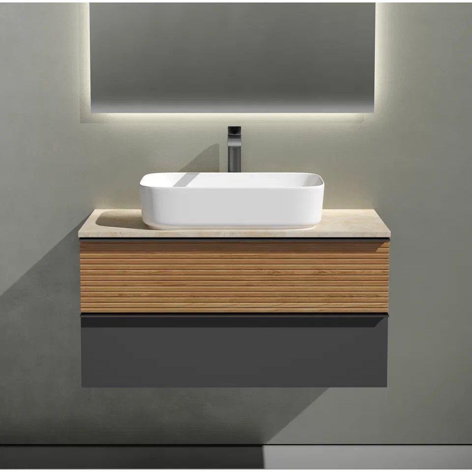 Тумба Sancos Delta 100 — подвесная с габаритами 99,5x44,5x50 см; изготовлена из МДФ и покрыта защитной пленкой, что гарантирует стойкость к влаге и механическим повреждениям. Матовый черный цвет фурнитуры подчеркивает ее стильное исполнение. Итальянская раковина Ceramicanova Element дополняет комплект, изготовленная из качественного фарфора без уместного донного клапана, что оптимально для классического использования.