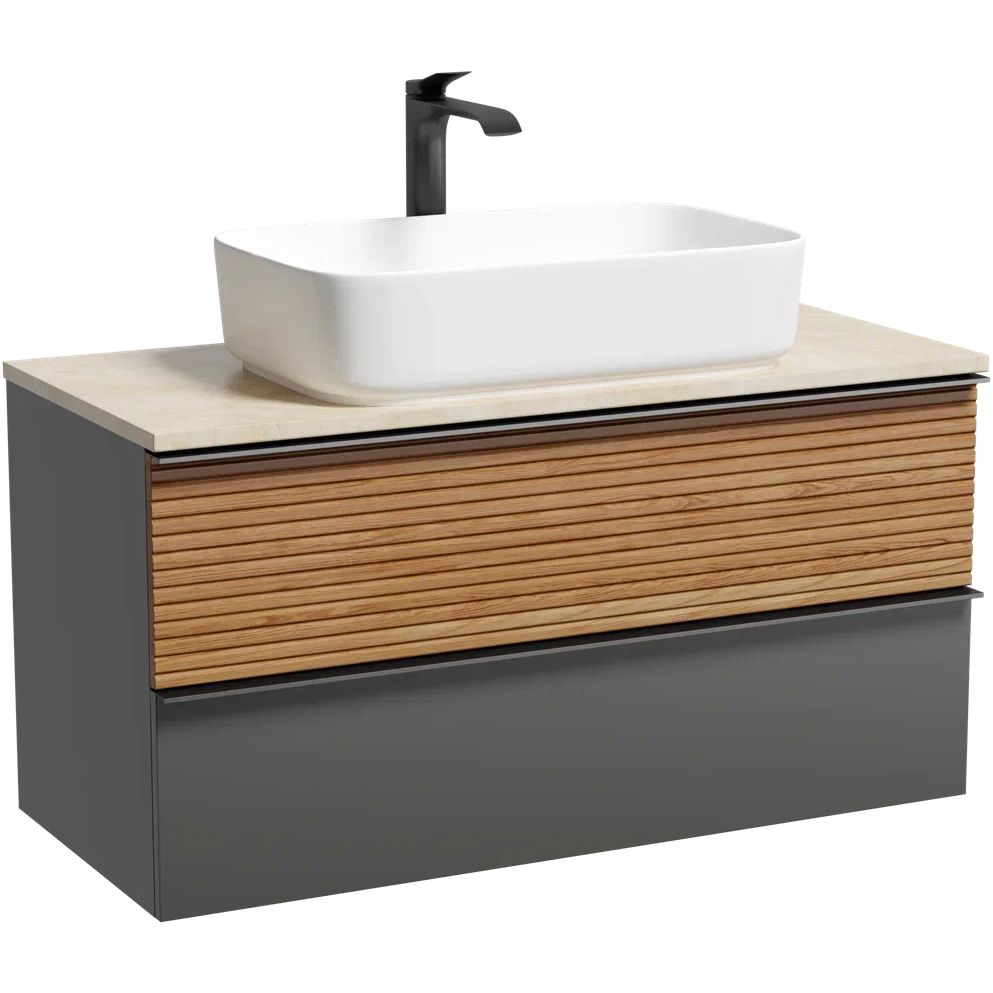 Ищете стильное и функциональное решение для вашей ванной комнаты? Обратите внимание на тумбу с раковиной Sancos Delta 100 см. Эта тумба гармонично сочетает в себе насыщенные оттенки дуба красного и графита, а бежевая столешница из керамогранита придаёт изысканность и элегантность. Этот комплект станет ярким акцентом в интерьере ванной комнаты, создавая атмосферу уюта и комфорта.