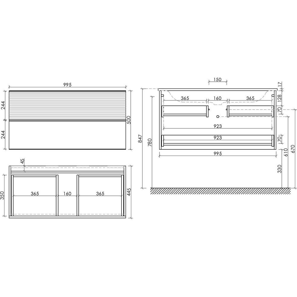 Тумба для комплекта Sancos Delta имеет размеры 99,5x44,5x50 см. Она подвесная, оснащена ящиками с механизмом доводчика. Корпус и фасад выполнены из МДФ и покрыты пленкой для дополнительной защиты. Фурнитура матово-черная. Раковина Ceramicanova Element имеет размеры 60x37,5 см, изготовлена из фарфора, с декоративной накладкой на слив, и предназначена для сифона диаметром 3.2 см. Гарантия на раковину составляет 10 лет. Столешница из керамогранита черного цвета имеет размеры 100x46x2.1 см и не содержит готовых отверстий под смеситель.