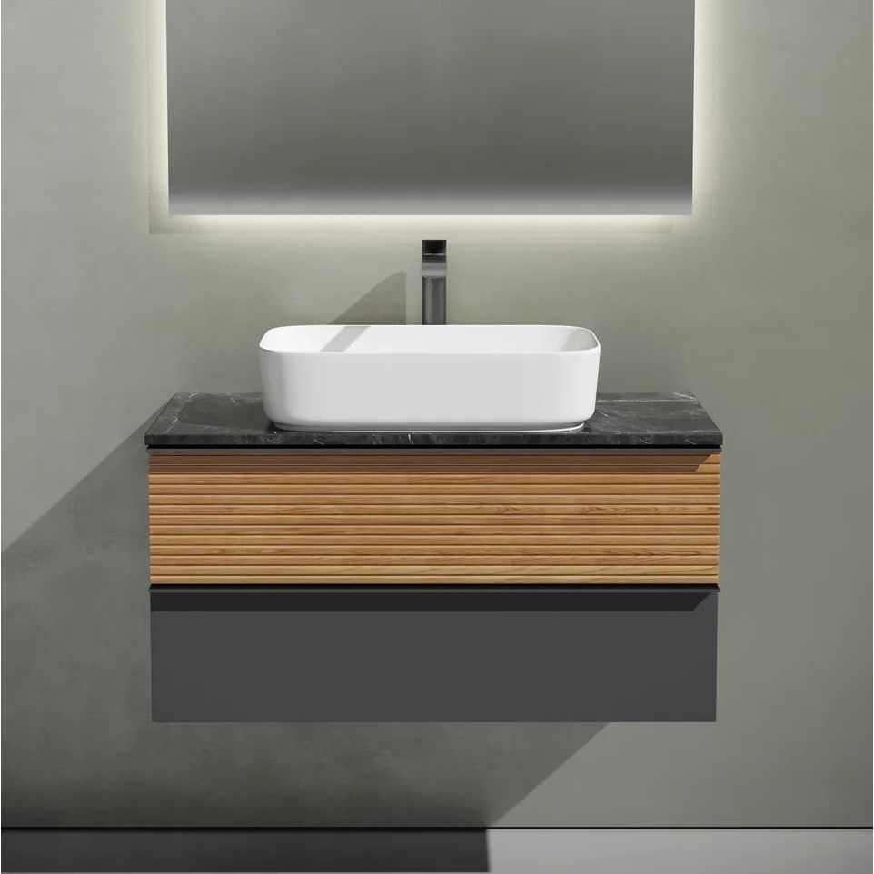Тумба с раковиной Sancos Delta – это стильное решение для вашей ванной комнаты, которое сочетает в себе изысканный дизайн и удобство использования. Эта модель выполнена в эффектном сочетании дуба красного и графита с элегантной черной мраморной столешницей, что придает ей уникальное очарование и современный вид. Раковина CN5021 из фарфора будет гармонично смотреться на этом стильном комплекте, подчеркнув утонченность интерьера вашей ванной комнаты.