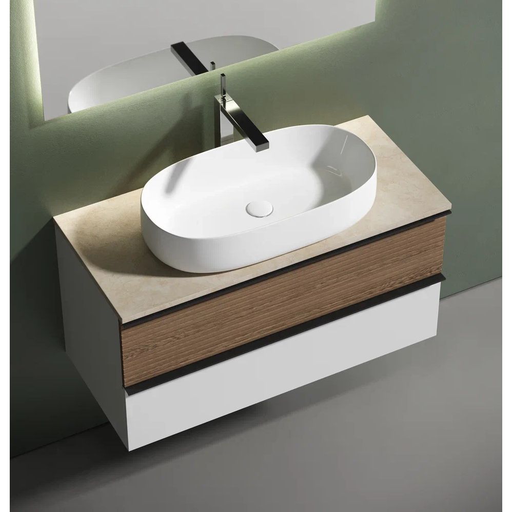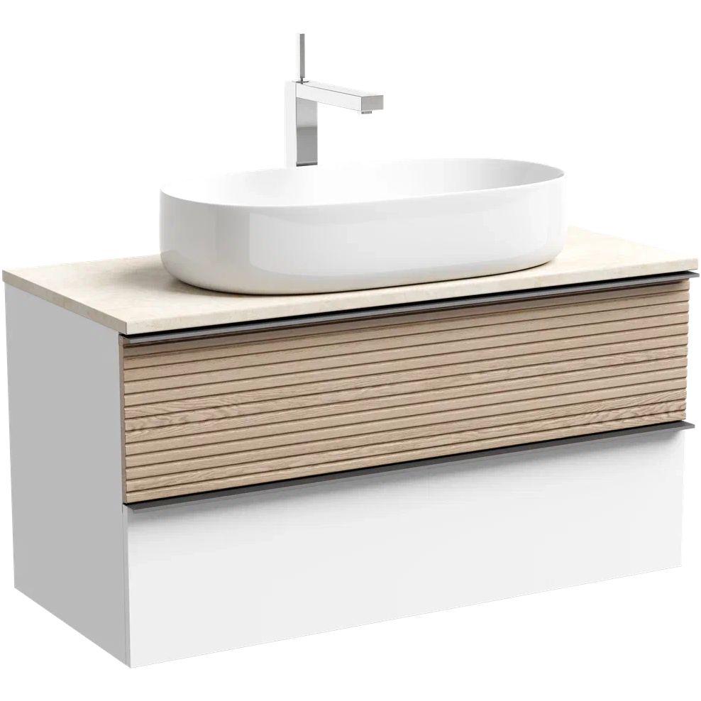 Тумба с раковиной Sancos Delta 100 см сочетает в себе современный дизайн, высокое качество материалов и функциональность, что делает ее идеальным выбором для вашей ванной комнаты. Просторная тумба в светлом дубовом оттенке с контрастной белой отделкой гармонично дополняет стильный керамогранитный топ бежевого цвета. Раковина итальянского производства Ceramicanova Element CN5022 завершает этот комплект, создавая непревзойденное эстетическое впечатление.