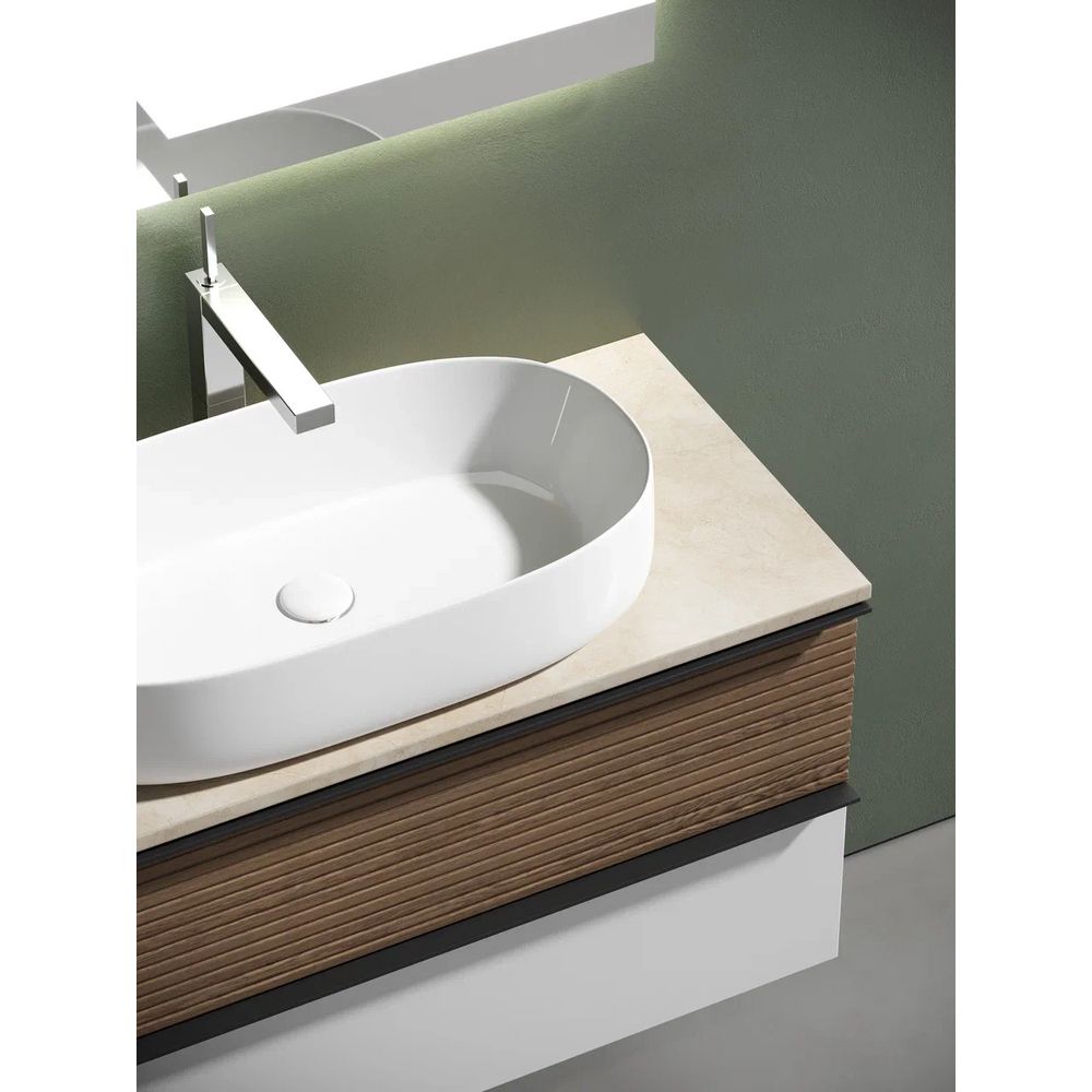 При выборе сифона важно учитывать конструктивные особенности тумбы и раковины, чтобы подобрать его индивидуально по параметрам изделия. Столешница поставляется без отверстий под смеситель, что позволяет адаптировать продукт под ваши потребности. Обратите внимание на то, что потребуется самостоятельно создать отверстие под смеситель, либо воспользоваться услугами специалиста для этого процесса.