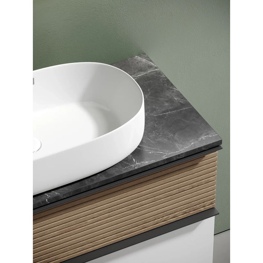 Тумба с раковиной Sancos Delta — это изысканный элемент интерьера для вашей ванной комнаты. Дизайн, объединяющий современные тренды и функциональность, делает этот комплект отличным выбором для тех, кто стремится к уникальному стилю и высокому качеству. Мебель создана с учетом всех современных стандартов и представлена в стильных цветах: корпус в светлом дубе и белые фасады гармонируют со столешницей из черного мрамора. Раковина из фаянса добавляет завершенности и создает атмосферу утонченности.