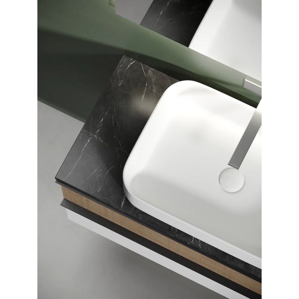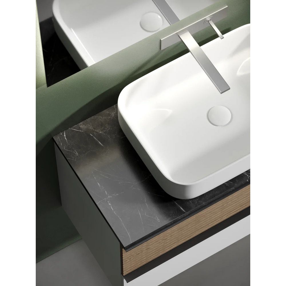 Столешница Sancos TT100A1 из керамогранита представлена в глубоком черном цвете мрамора и имеет размеры 100x46x2.1 см. Обратите внимание, что столешница не имеет отверстий под смеситель.