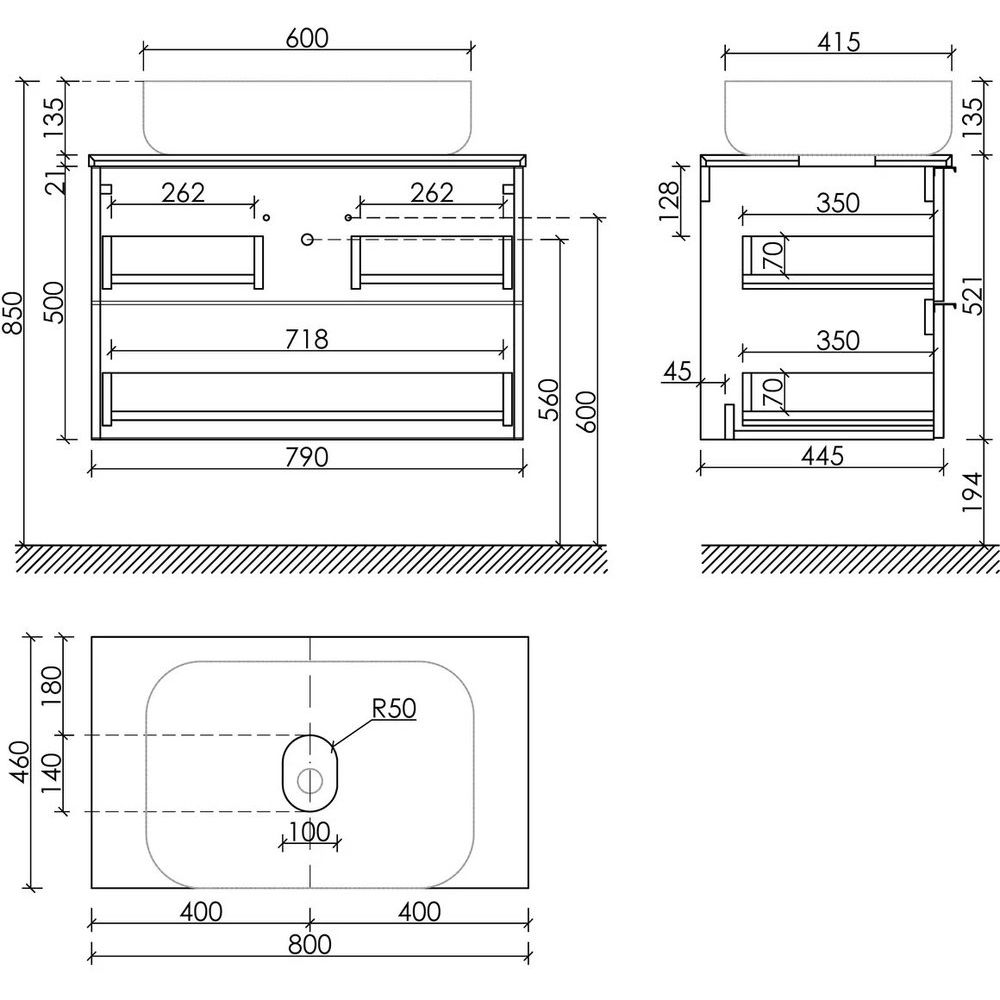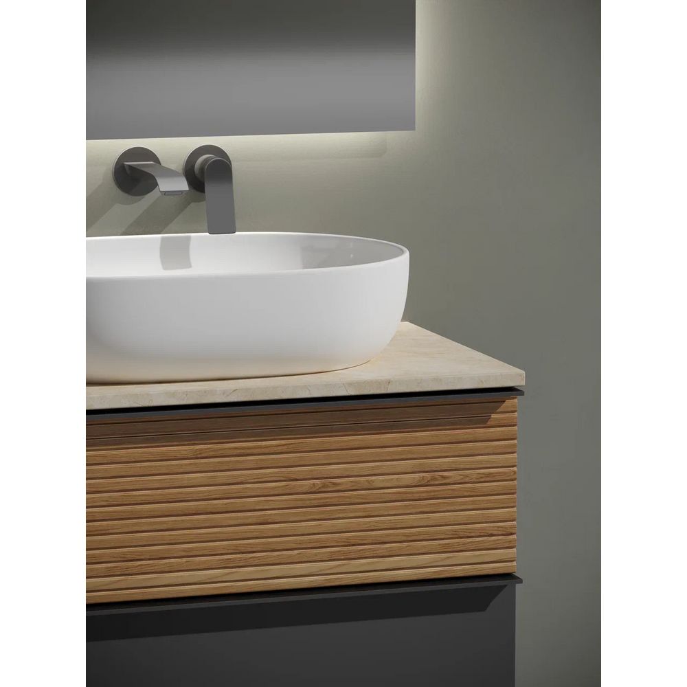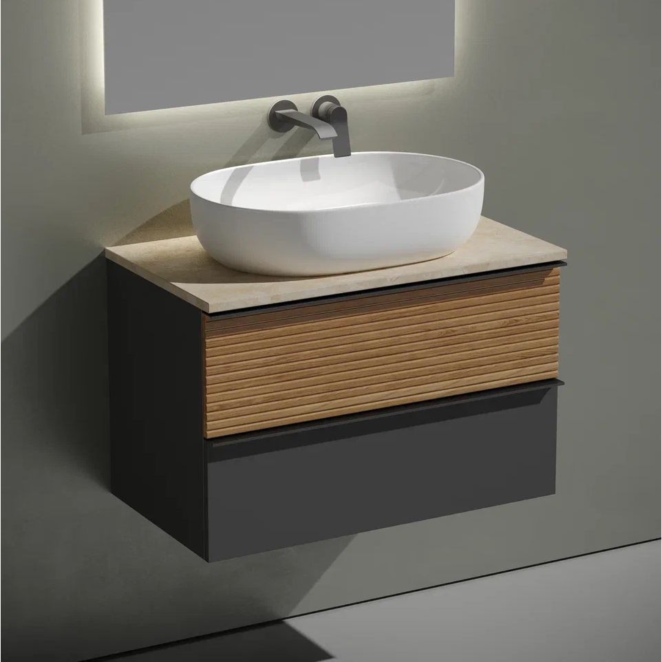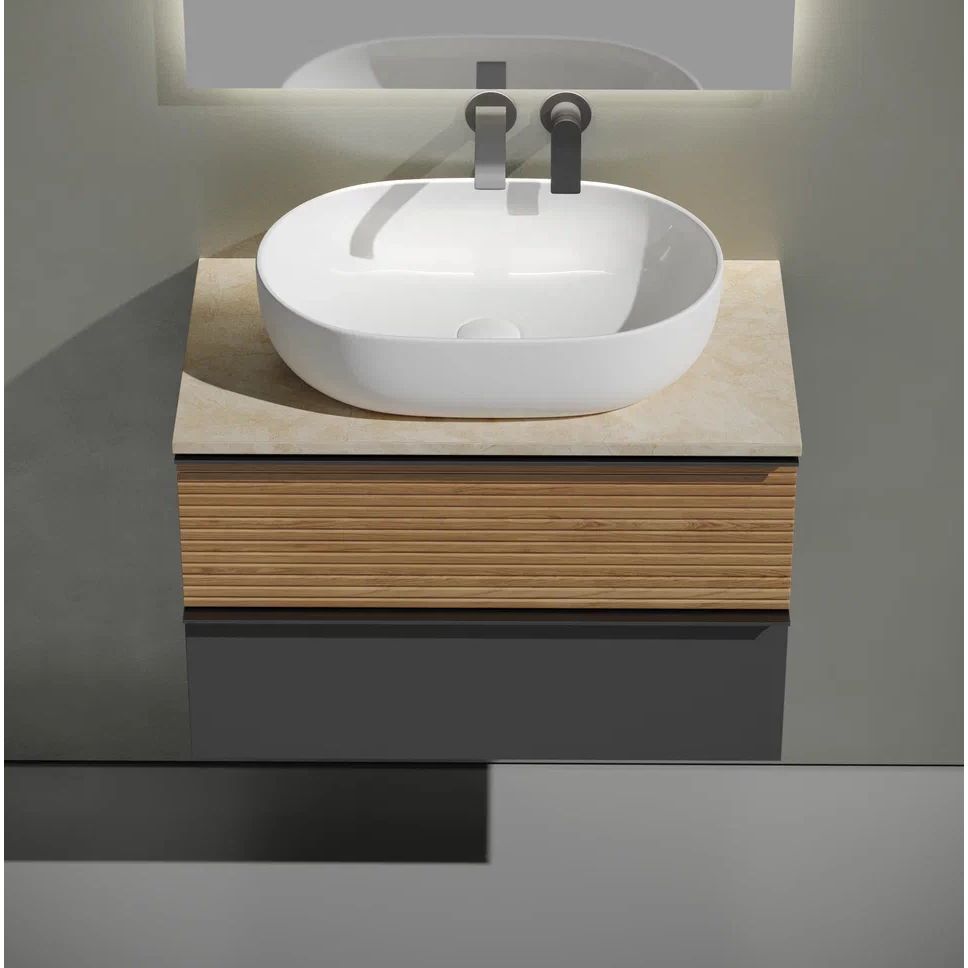 Тумба Sancos Delta выполнена из МДФ с пленочным покрытием для повышения устойчивости к влаге. Ее размеры (79x44,5x50 см) идеально подходят для ванной среднего размера. Модель оснащена ящиками с матовой черной фурнитурой и механизмом мягкого доводчика. Красивая раковина Ceramicanova Element CN6047 из фаянса (60x41,5 см) добавит практичности и итальянской элегантности. Керамогранитная столешница (80x46x2.1 см) без кронштейнов позволяет проявить индивидуальность в выборе смесителя.
