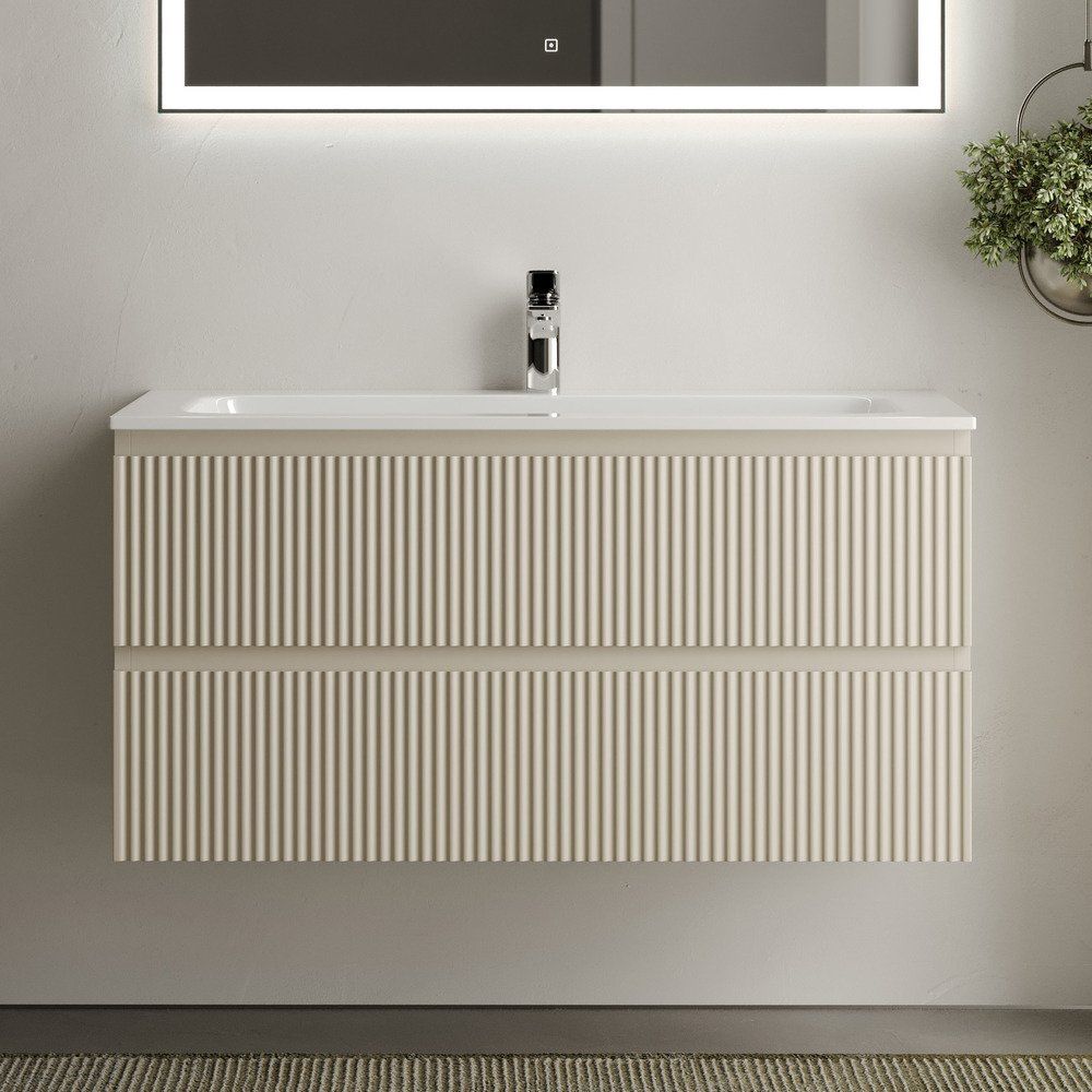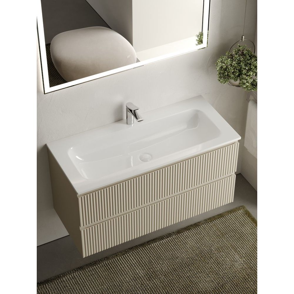 Откройте для себя элегантность и функциональность с тумбой под раковину Sancos Snob R 100 см цвета beige soft. Эта стильная мебель для ванной комнаты не только придаст вашему пространству изысканный вид, но и обеспечит удобство и практичность в повседневном использовании. Идеально изготовленная в Италии, она станет центральным элементом интерьера любой ванной комнаты.