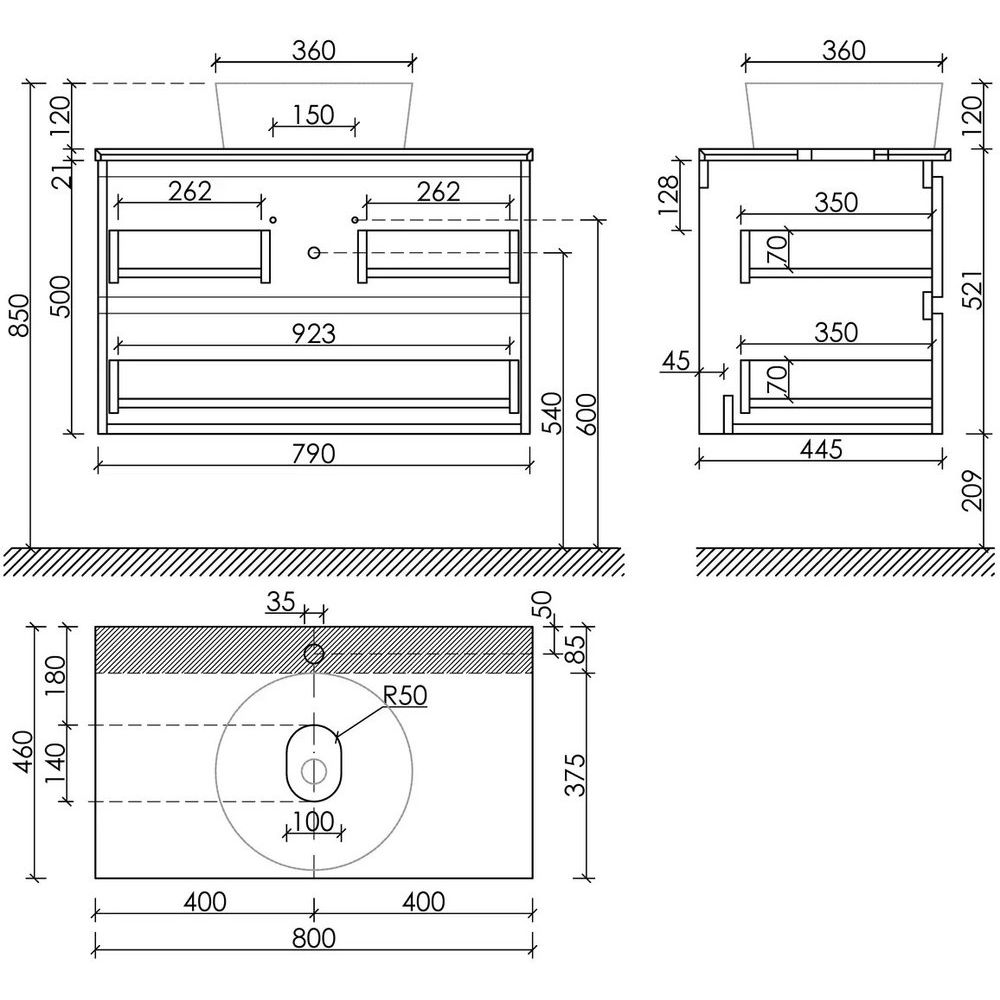 Перед покупкой этого комплекта важно обратить внимание на выбор сифона, так как его конструкция должна соответствовать особенностям тумбы с раковиной. Также, учтите, что столешница идет без отверстий для смесителя, и они должны быть выполнены по месту установки. Это позволяет сохранить целостность дизайна и индивидуально подстроиться под ваш выбор сантехнического оборудования.