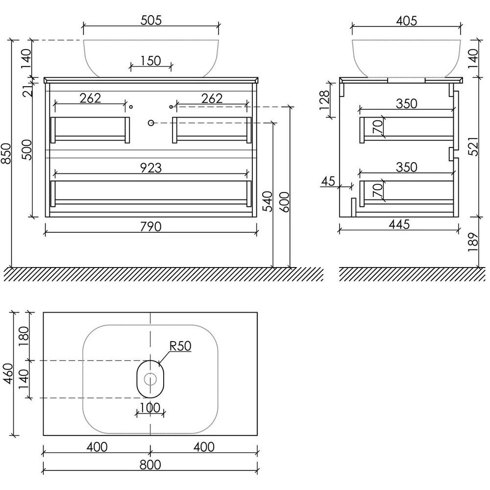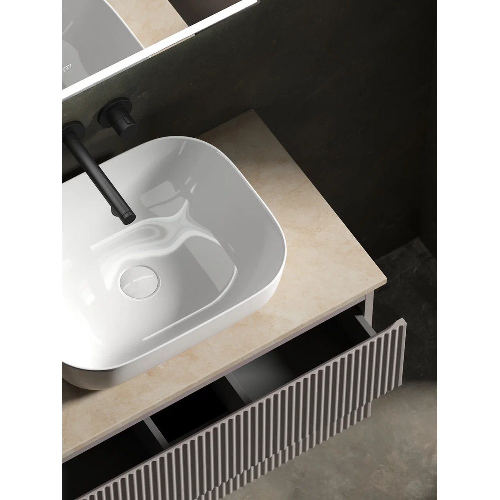 Раковина Ceramicanova Element CN6008 изготовлена из прочного фаянса и имеет размеры 50,5x40,5 см. Она поддерживает сифон диаметром 3,2 см, но вам нужно будет отдельно приобрести донный клапан. Столешница Sancos TT80A2 из керамогранита имеет размер 80x46x2,1 см и выполнена в бежевом цвете.